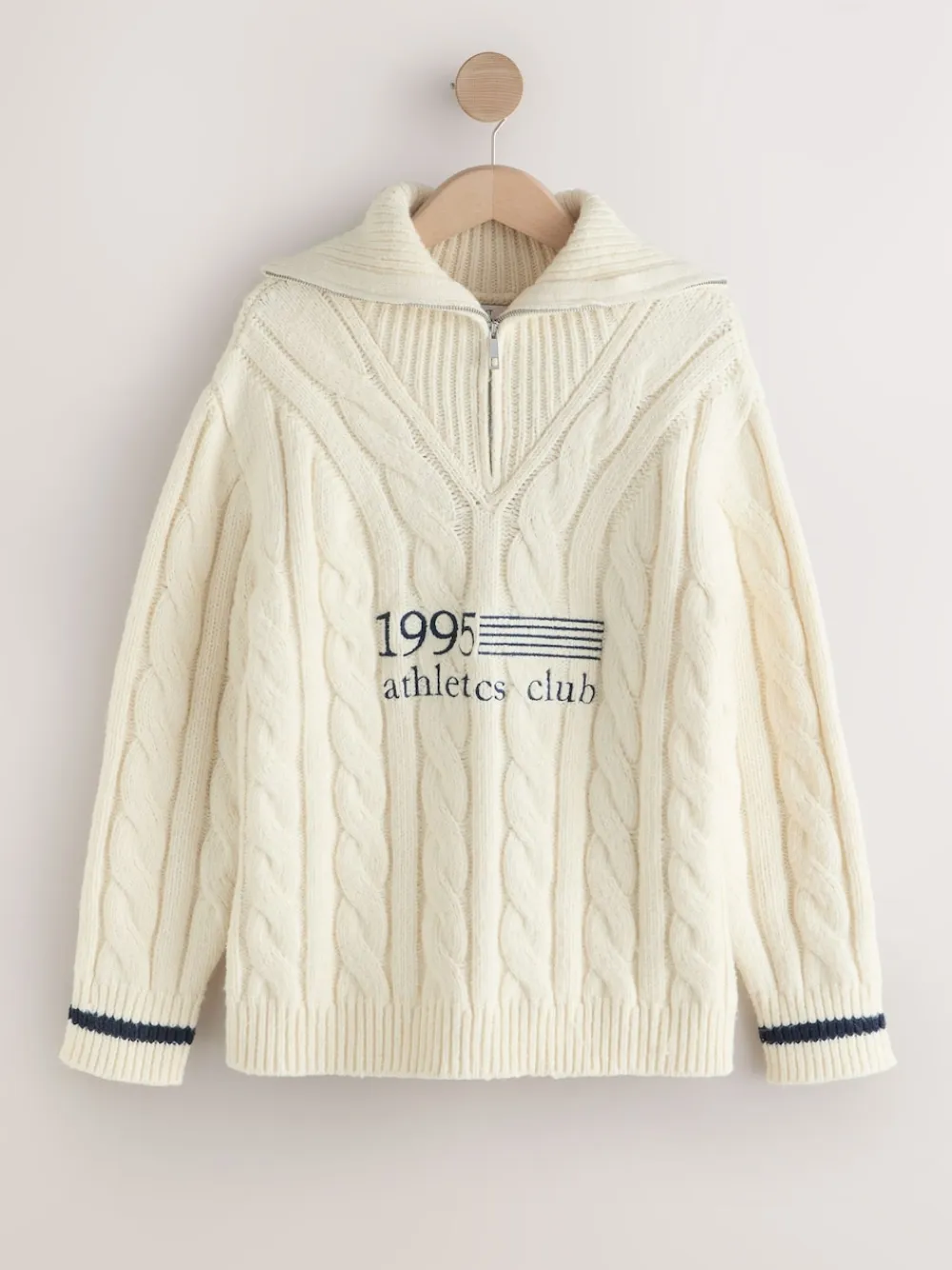 Be the first to review “Next Ecru Cream Cable Zip Neck 1995 Graphic Jumper” Cancel reply