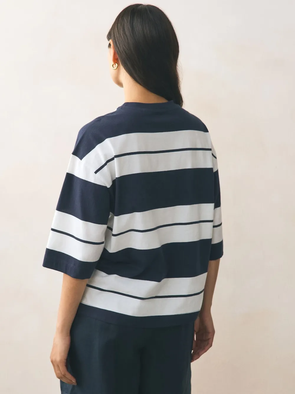 Next Elbow Length Crew Neck 100% Cotton T-Shirts 3 Pack Pink/Khaki/Stripe Discount