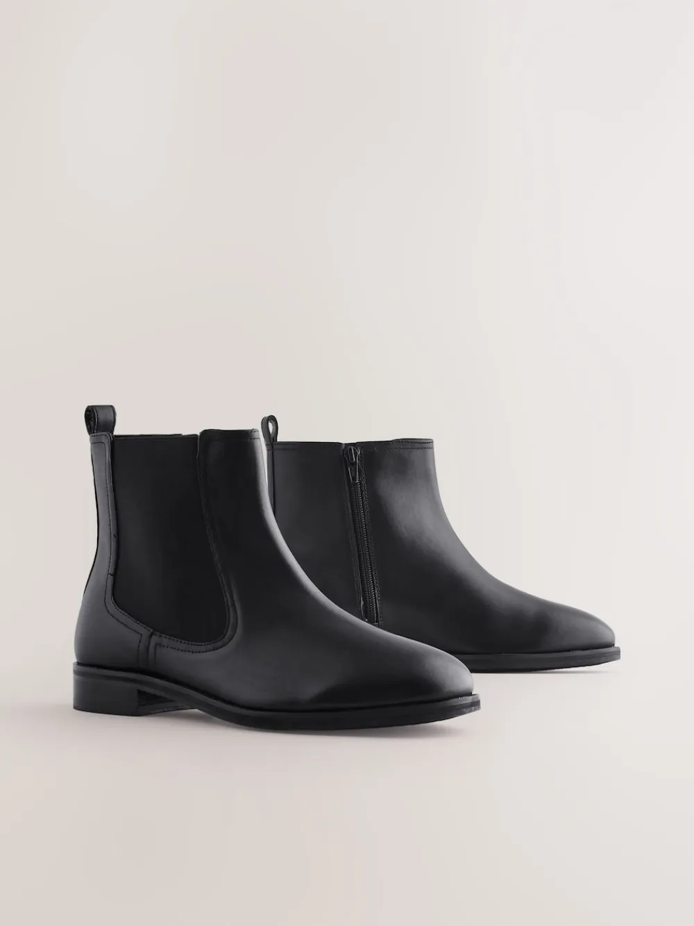 Next Extra Wide Fit Forever Comfort® Chelsea Ankle Boots Black Leather New