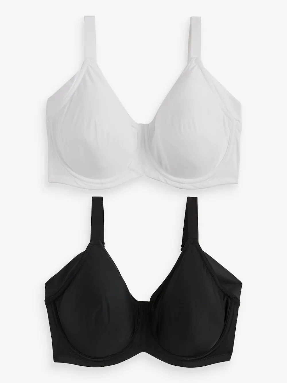 Next F-K Cup Under Arm Smoothing Non Pad Wired Minimising Ultimate Comfort Bras 2 Pack Black/White Clearance