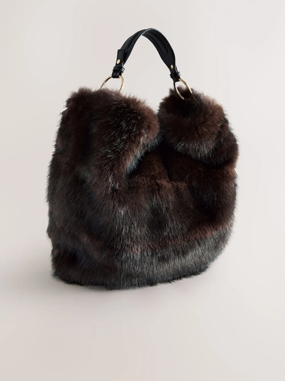 Next Faux Fur Shoulder Bag Chocolate Brown Online