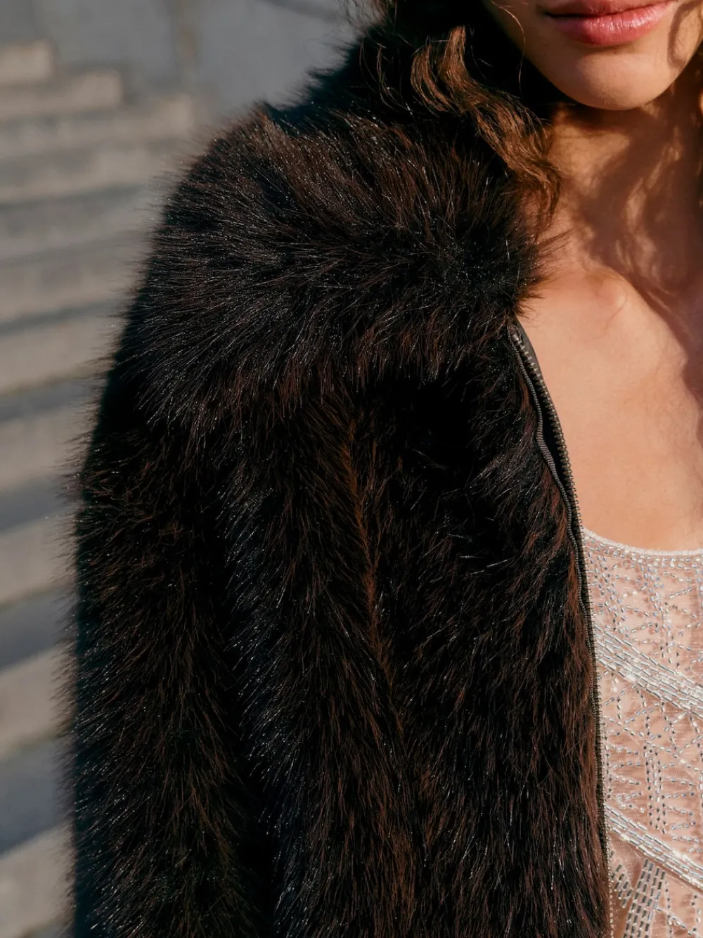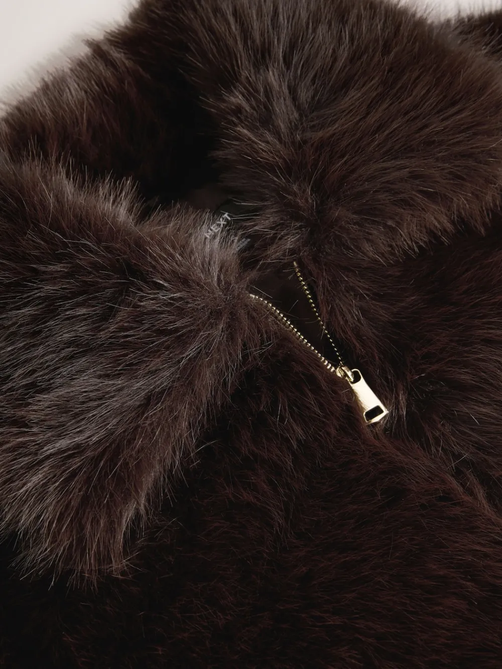 Next Faux Fur Zip Through Jacket Chocolate Brown Sale