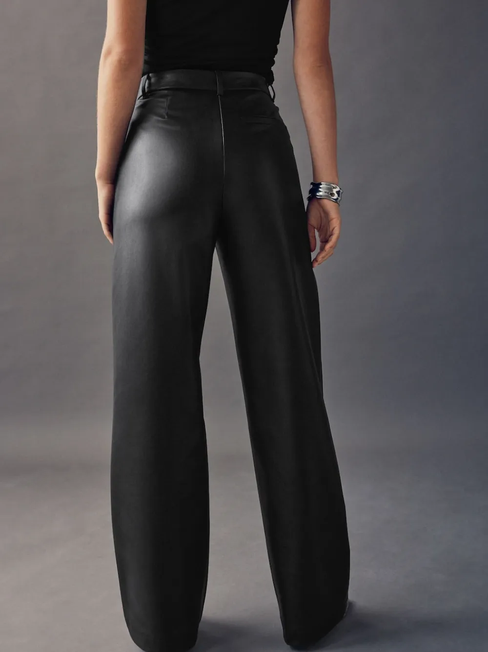 Elevate your evening and smart casual looks with these bold Faux Leather Straight Leg Trousers. Cut in a stylish wider fit straight leg, these trousers offer a modern silhouette and feature smart front fastening and pocket details for a polished, tailored feel. Vertical seam detail down the front enhances the structure, ensuring a flattering fit. Providing an edgy texture, these trousers are a great alternative to jeans for party season and can easily be dressed up for any night out. Smart front fastening Pocket details Front seams Short to fit inside leg 27″ / 69cm. Regular to fit inside leg 29″ / 74cm. Long to fit inside leg 31″ / 79cm. XL Tall to fit inside leg 33″ / 84cm. Machine washable. 100% Recycled polyester with PU coating. Items with the curve logo are available in sizes 18 and above., Our tall collection is designed to fit women 5’10” and above. This has been proportionally increased through the body, leg and sleeve to achieve the perfect fit. Available in sizes 8-20.