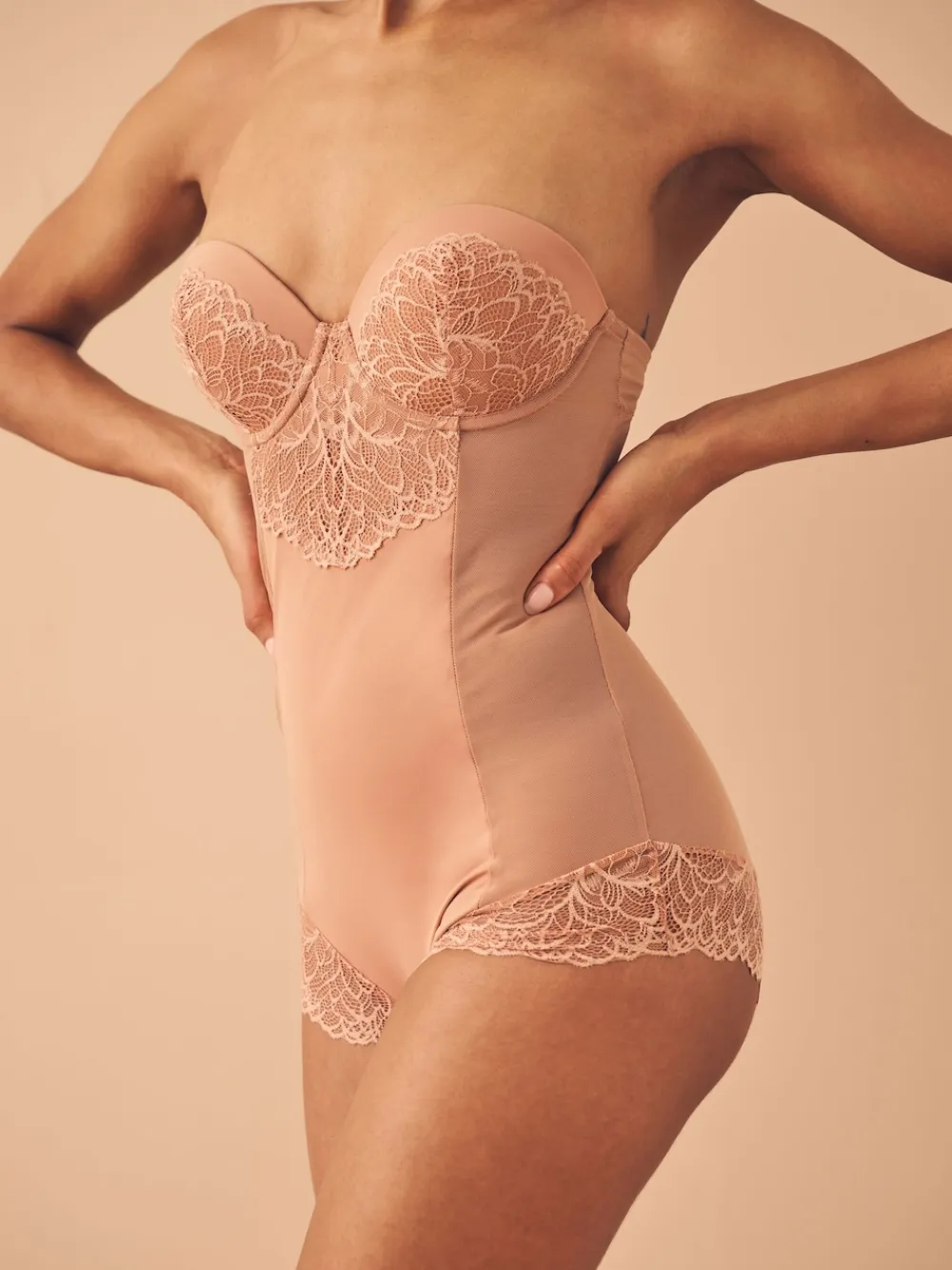 Next Firm Tummy Control Cupped Lace Body Caramel Nude Clearance