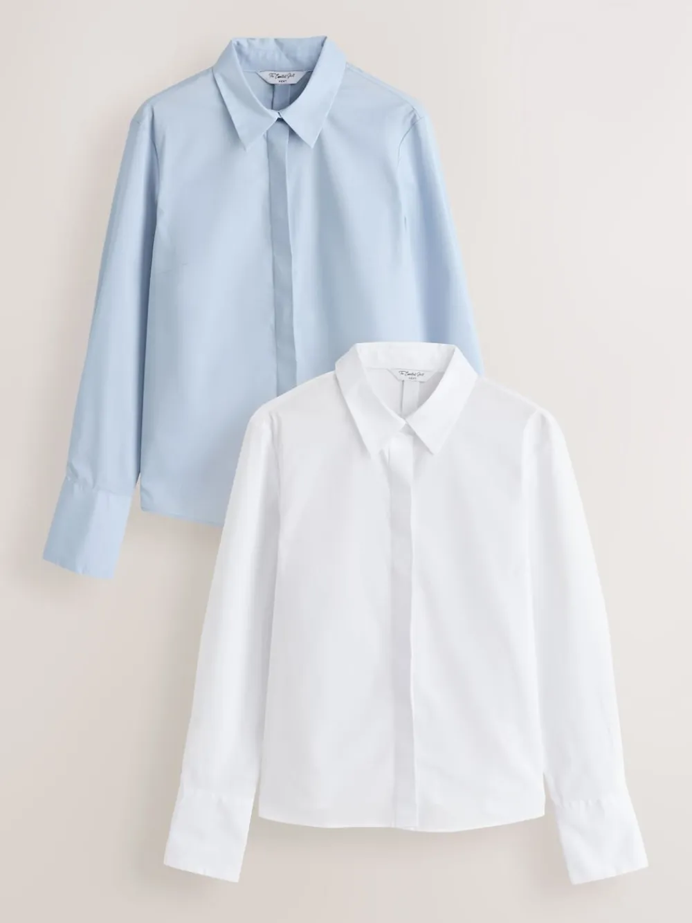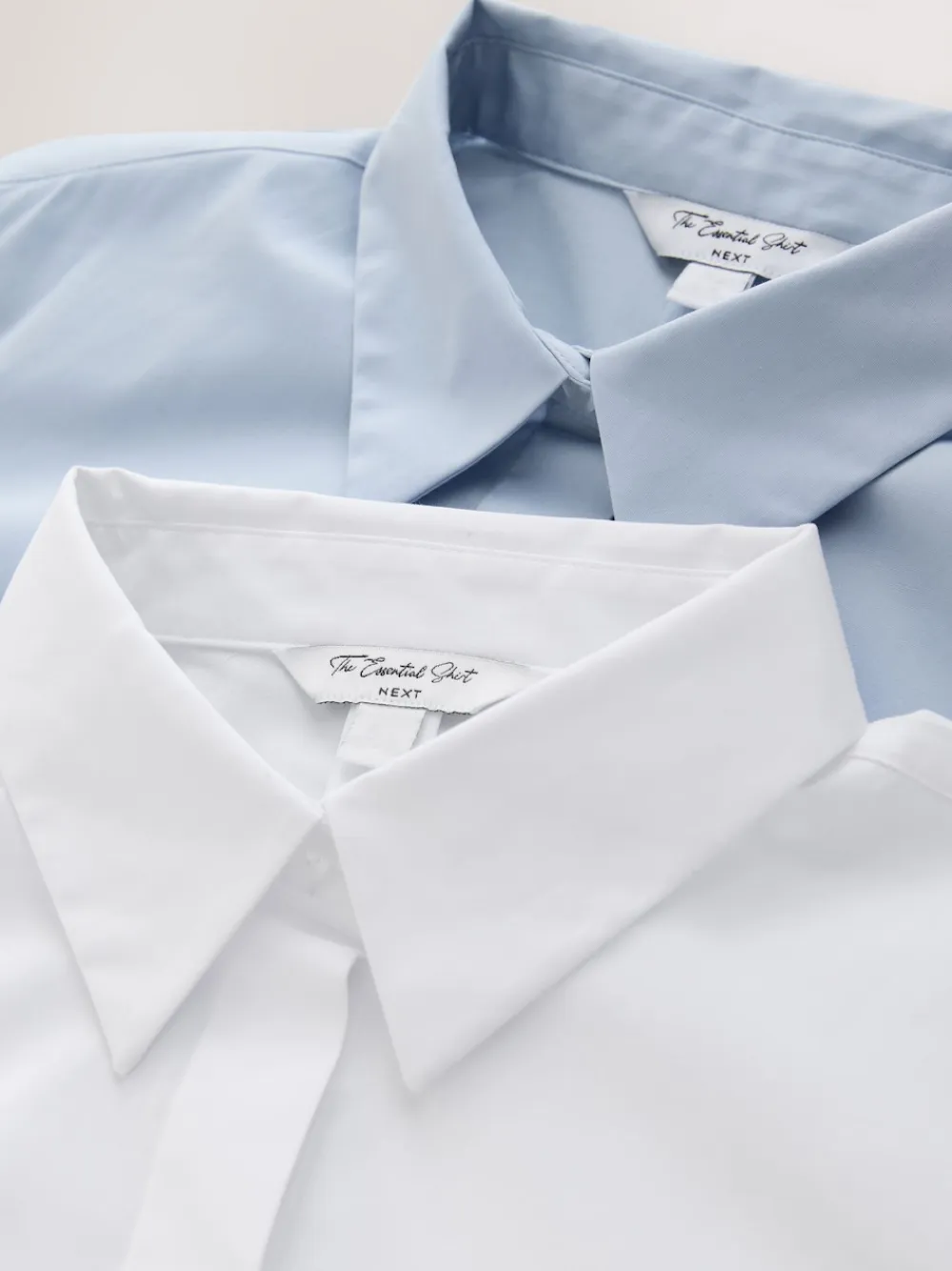 Next Fitted Stretch Essential Long Sleeve Shirts 2 Pack Blue/White Best