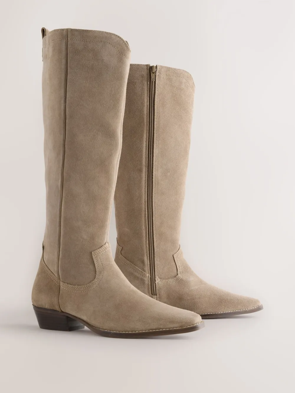 Next Forever Comfort® Knee High Contrast Western Boots Taupe Brown Suede Leather Mix Hot