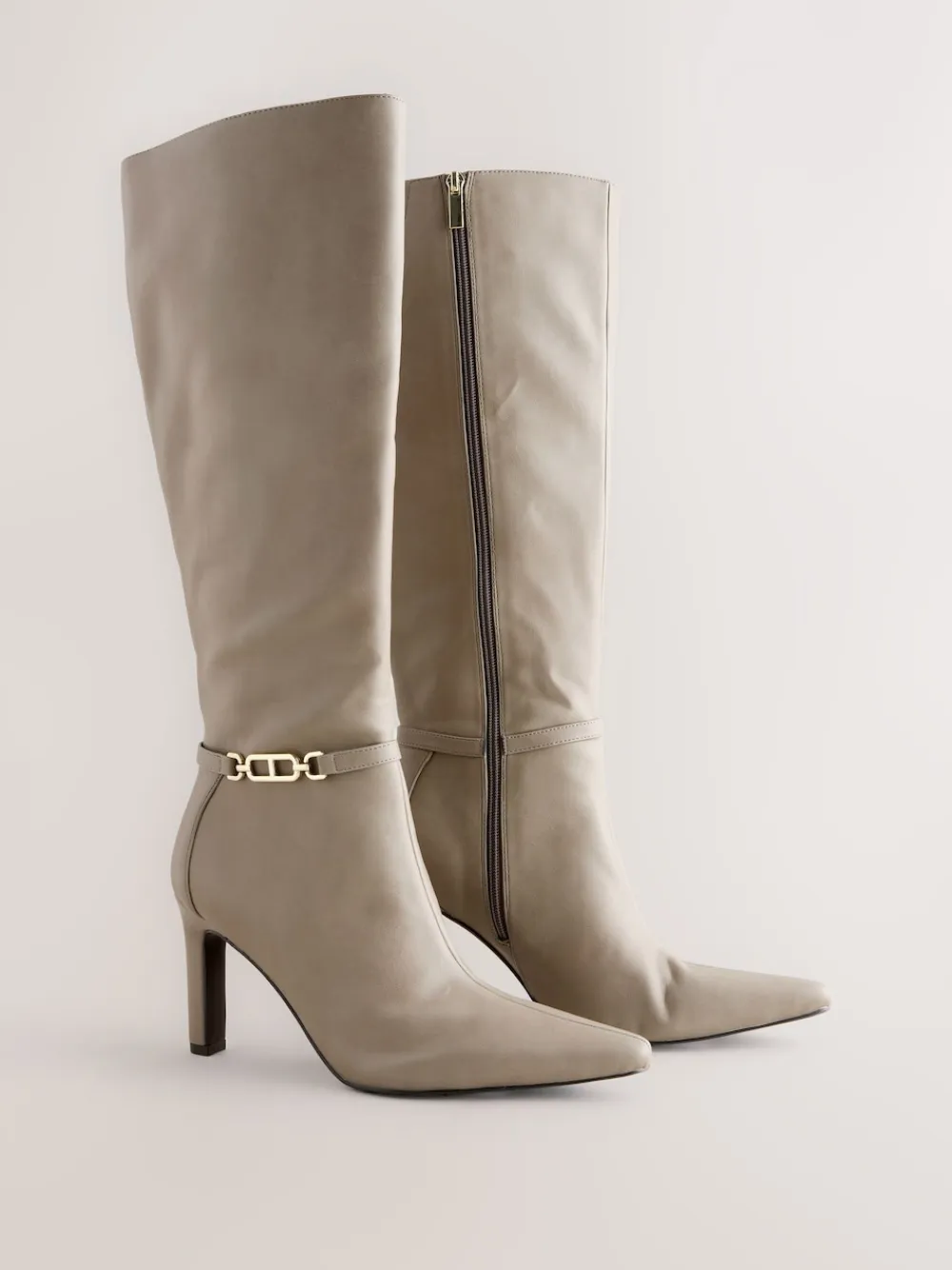Next Forever Comfort® Knee High Hardware Trim Heeled Boots Taupe Best