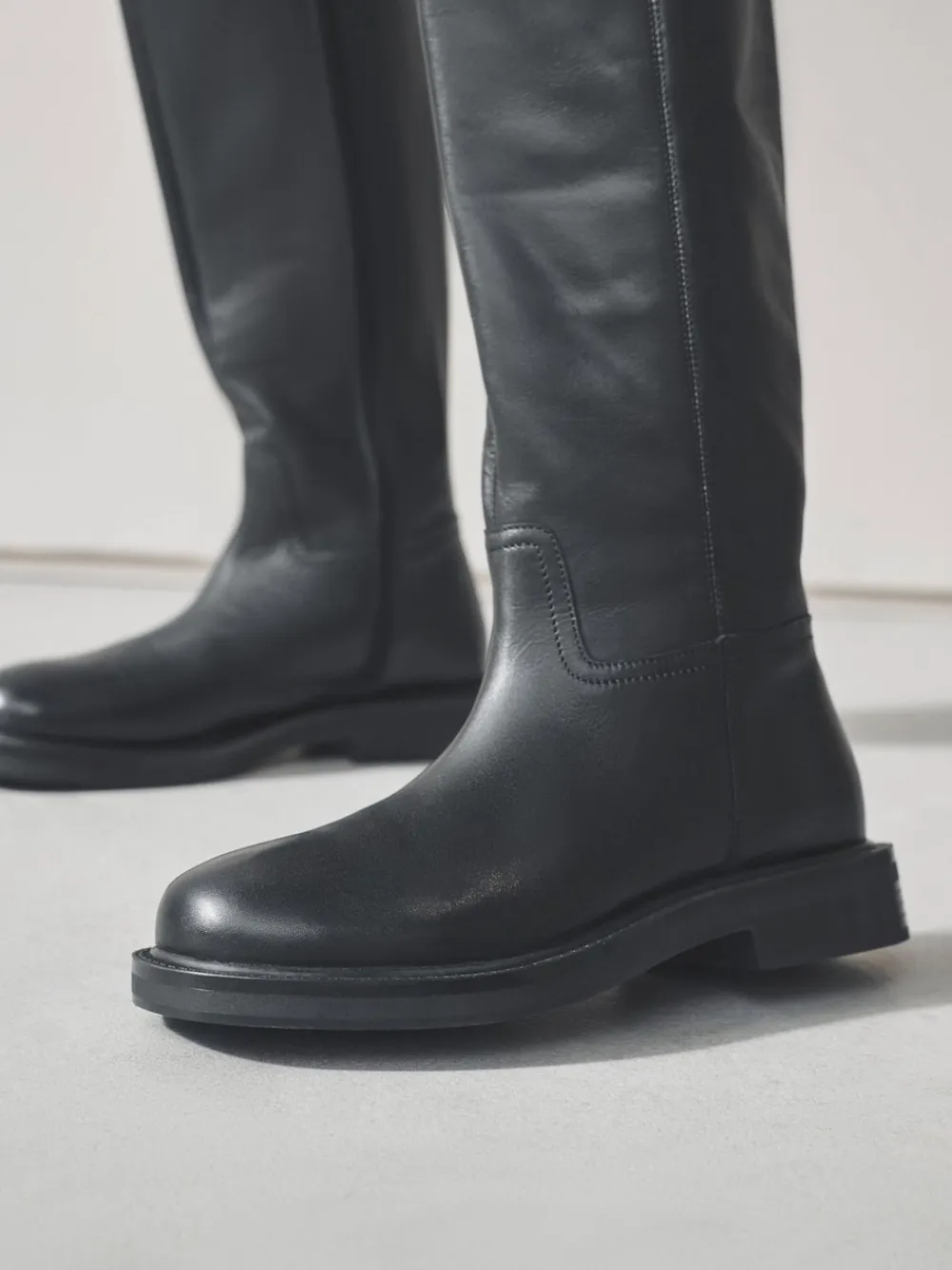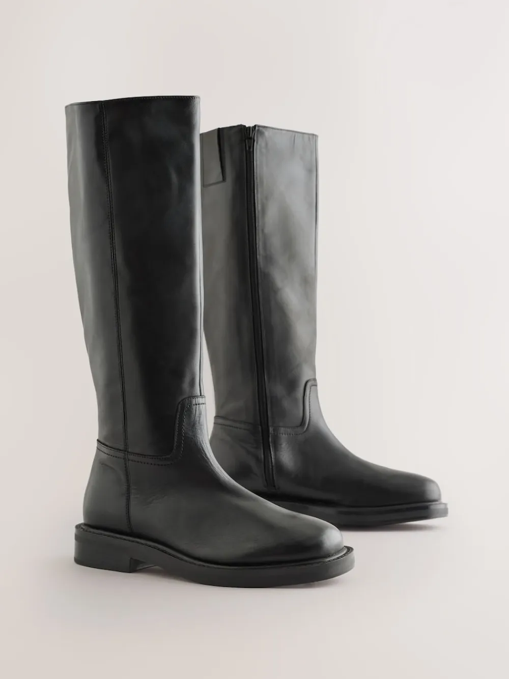 Next Forever Comfort® Leather Round Toe Chunky Knee High Boots Black Outlet
