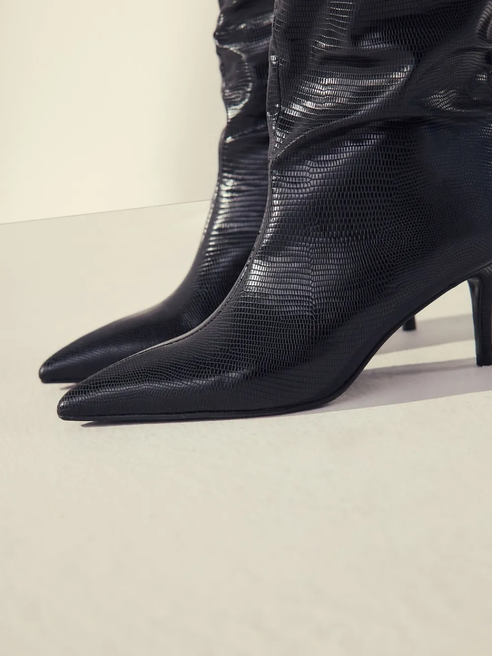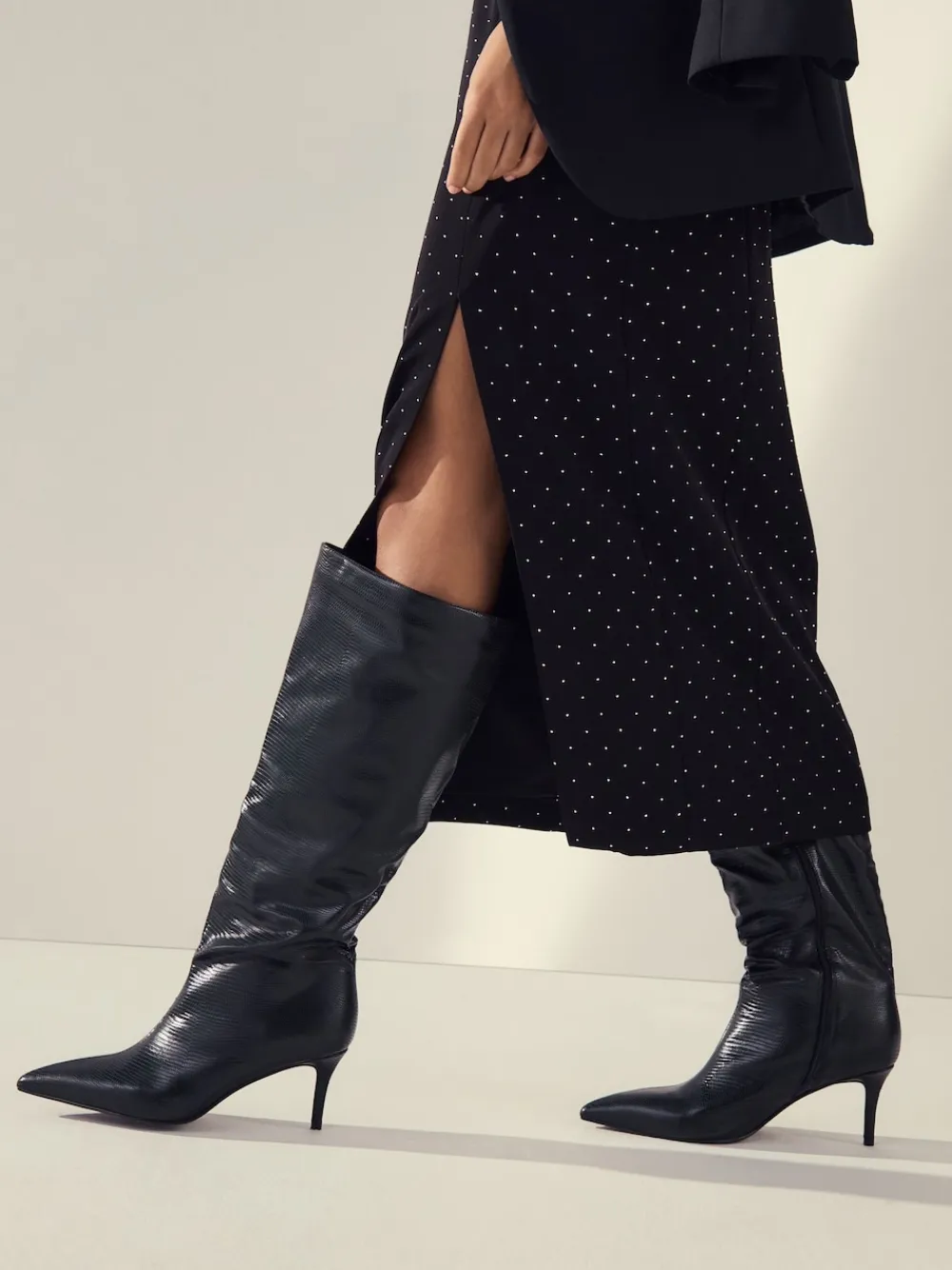 Next Forever Comfort® Point Toe Heel Slouch Knee High Boots Black New