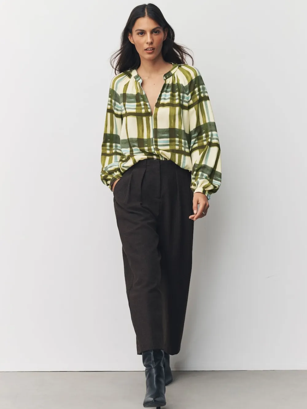 Be the first to review “Next Green/Ecru Check Long Sleeve V-Neck Blouse” Cancel reply