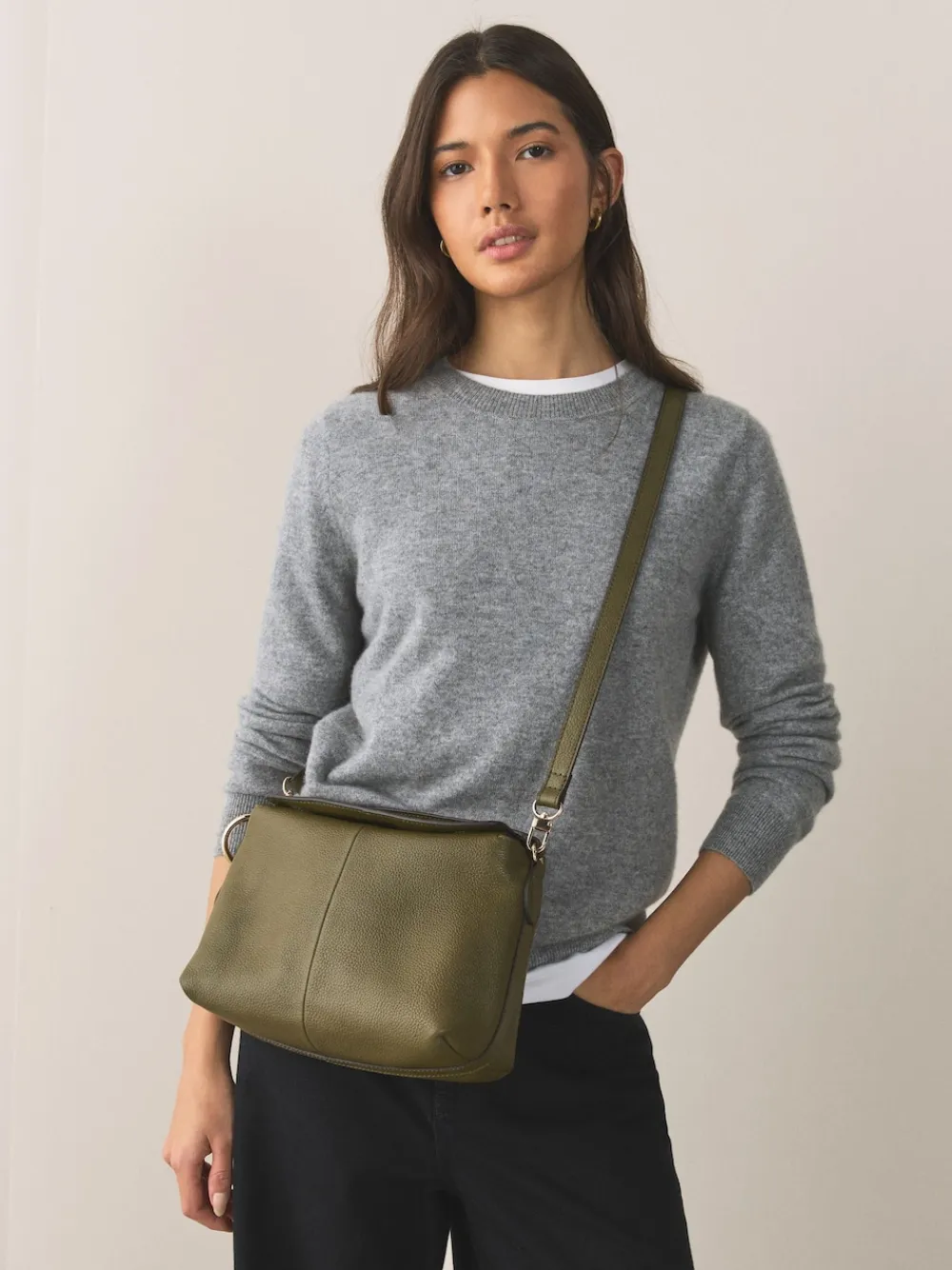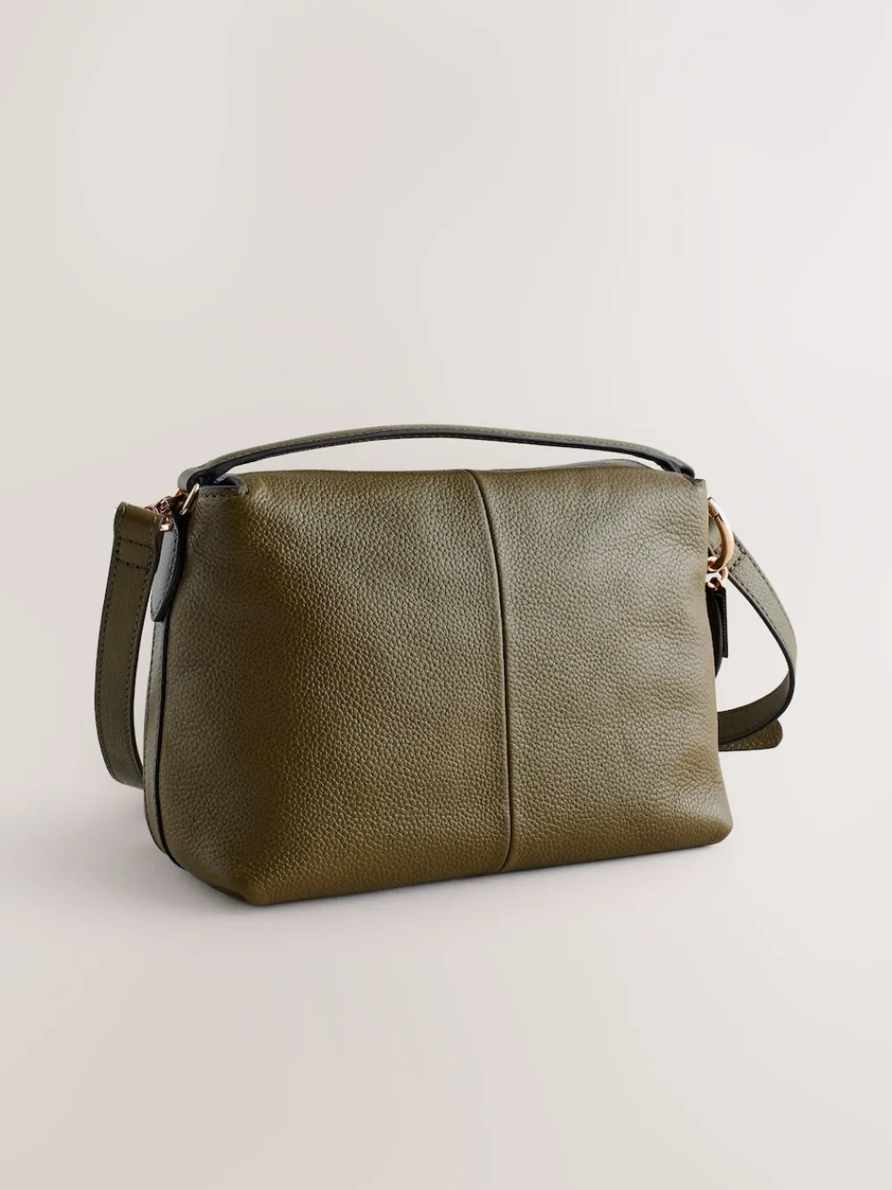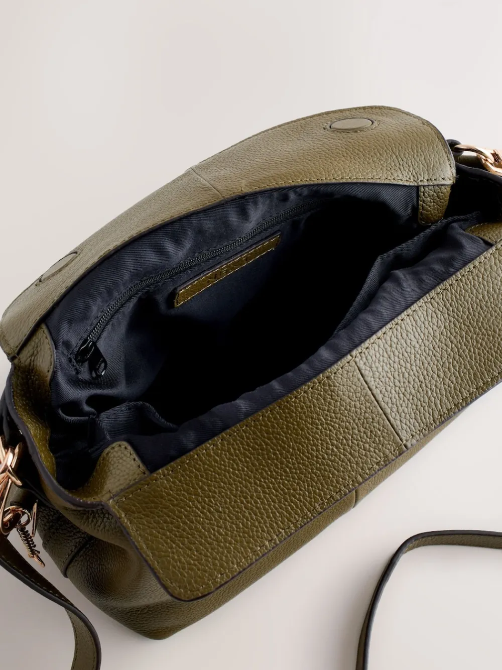 Add a utilitarian touch to your accessories with this effortlessly chic slouchy cross-body bag. Crafted from sumptuously soft leather in a rich olive green, its relaxed shape is ideal for everyday use. Complete with a secure magnetic flap, it features a convenient top handle and a removable, adjustable strap for versatile wear. Soft leather fabric Removable, adjustable strap Top handle detail Slouchy cross-body shape Main 100% Leather. Lining 100% Recycled polyester.