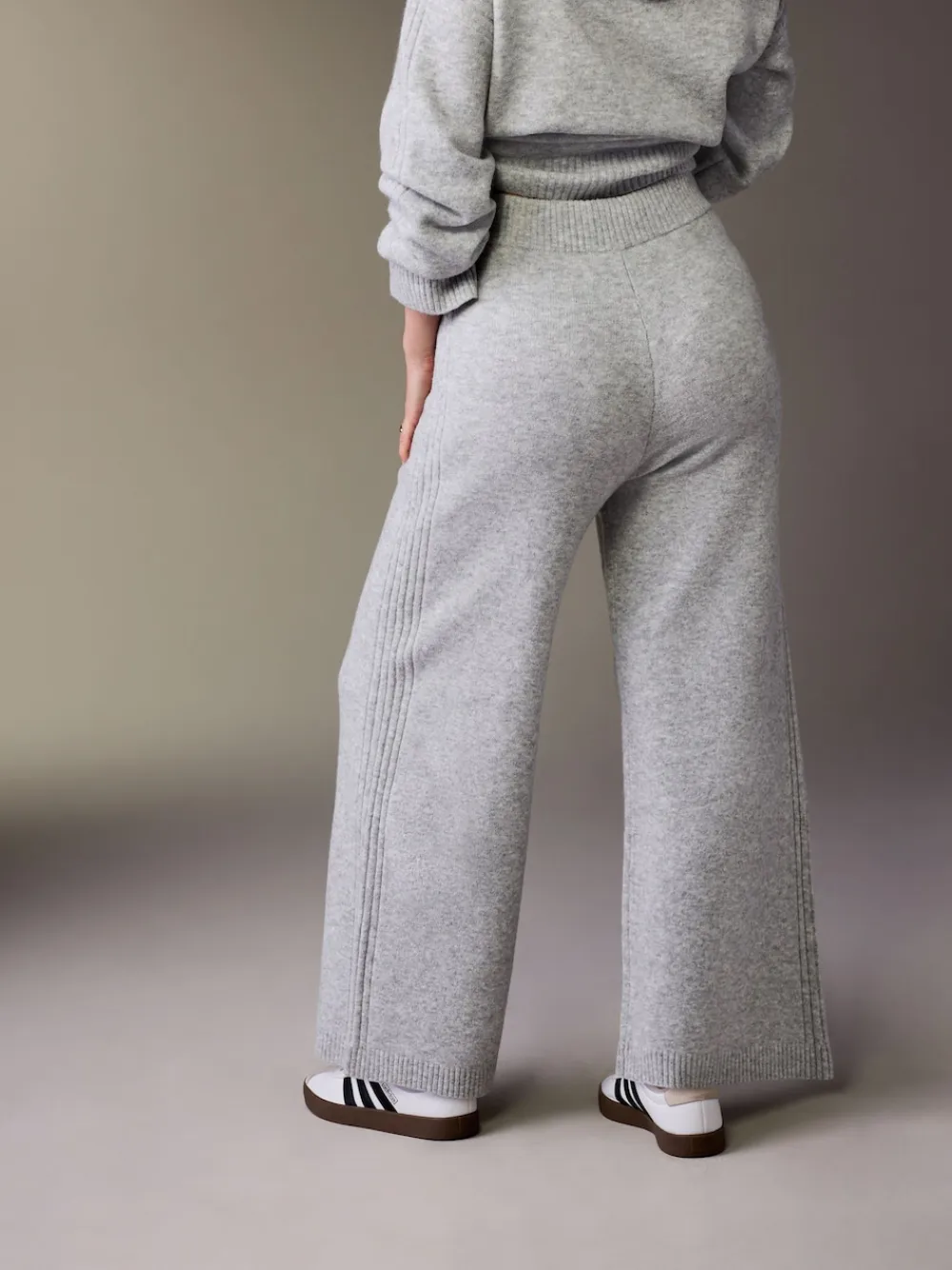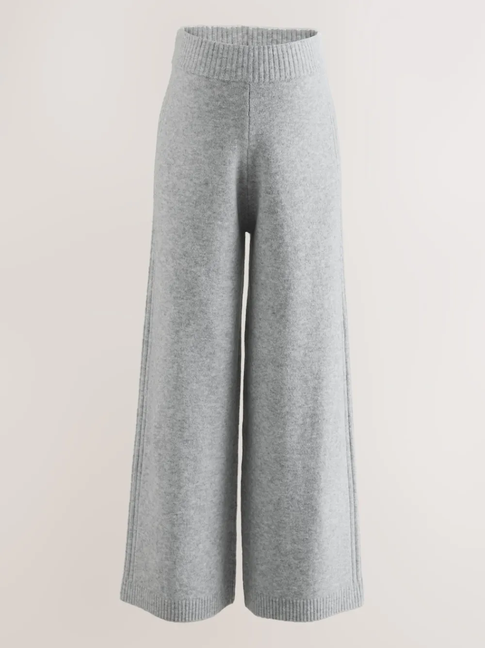 This knitted wide-leg trouser is the perfect lounging piece for this autumn/winter season, ideal for chill days or running errands. Guaranteed to keep you warm and comfortable, these trousers are a stylish and cosy addition to your wardrobe. Elasticated waist for comfort Wide-leg style Ribbed waist Knitted fabric Regular to fit inside leg 29″ / 74cm. Machine washable. 52% Recycled polyester, 36% Acrylic, 10% Wool, 2% Elastane.