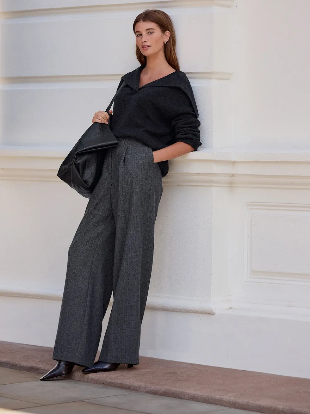 Introduce sophisticated texture to your wardrobe with the Grey N. Premium Wide Leg Pleated Trousers. Crafted with a blend that contains wool, these trousers offer a superior feel and comforting warmth, perfect for cooler weather. The modern wide leg silhouette is complemented by a sharp front pleat detail, adding tailored structure and a relaxed fit. These trousers are the definition of elevated workwear, easily transitioning from professional settings to smart-casual events while keeping you comfortable and chic. N. Premium Wide leg Front pleat Contains wool Short to fit inside leg 27″ / 69cm. Regular to fit inside leg 29″ / 74cm. Long to fit inside leg 31″ / 79cm. XL Tall to fit inside leg 33″ / 84cm. Machine washable. 67% Recycled polyester, 32% Wool, 1% Acrylic. Items with the curve logo are available in sizes 18 and above., Our tall collection is designed to fit women 5’10” and above. This has been proportionally increased through the body, leg and sleeve to achieve the perfect fit. Available in sizes 8-20.