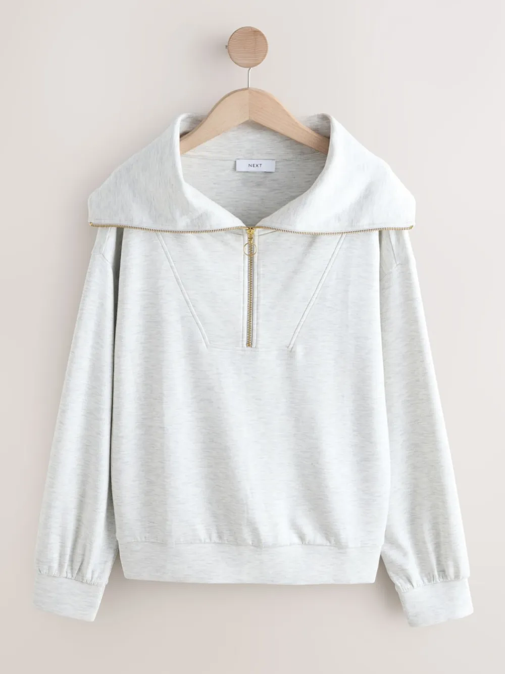 Next Half Zip Jersey Sweatshirt Grey Marl Hot