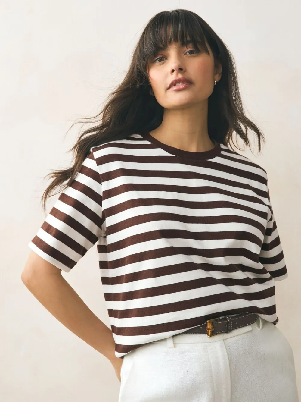 Available in a selection of timeless striped prints, this cotton t-shirt has a heavyweight feel for an elevated feel, finished with a crewneck collar. Heavyweight 100% cotton Crewneck collar Machine washable. Main 100% Cotton. Rib 96% Cotton, 4% Elastane. Items with the curve logo are available in sizes 18 and above.