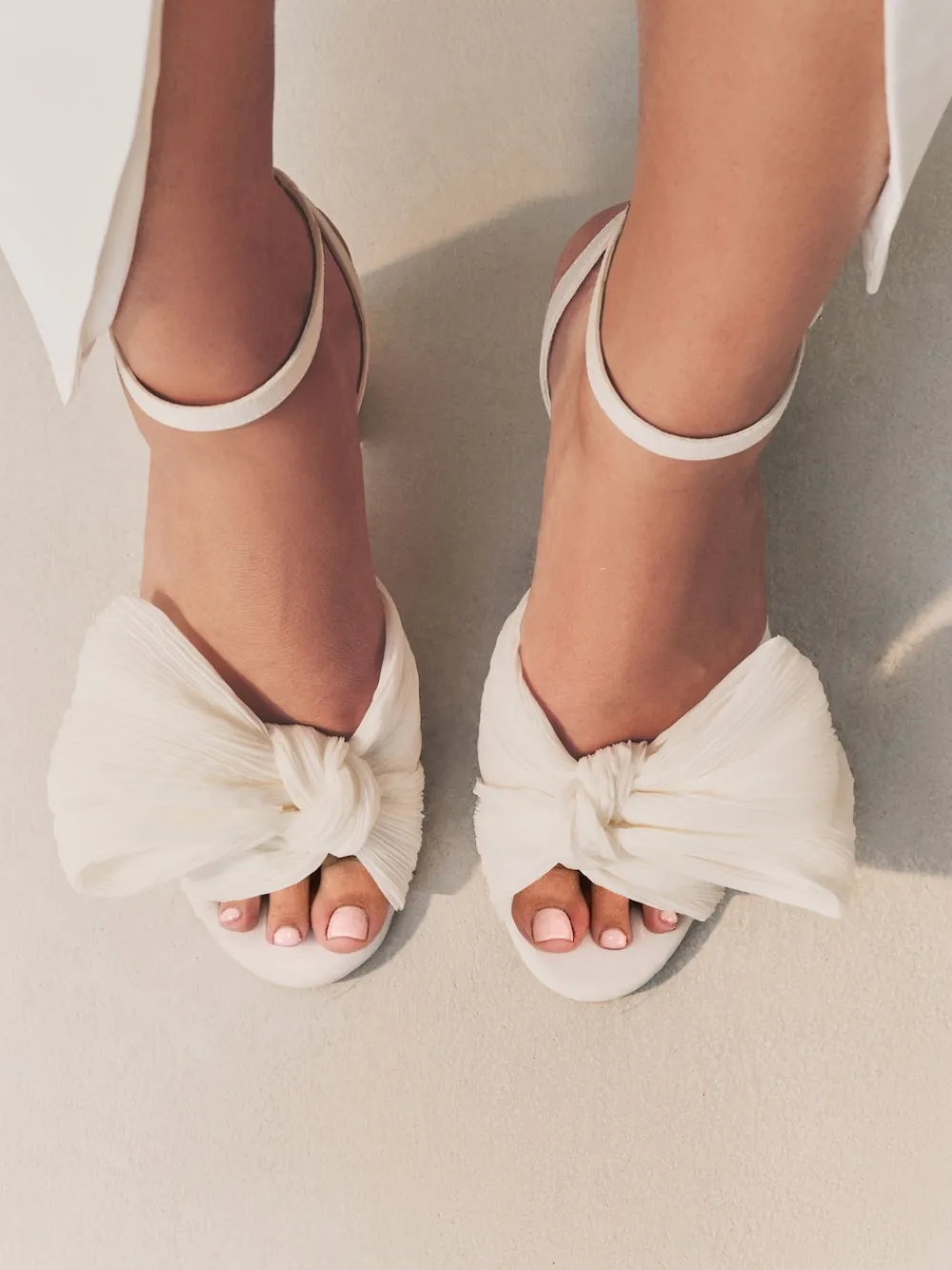 Walk in comfort on your big day with these ivory wedding bridal heels. The perfect pair of heels to step down the aisle in, these open toe heels feature a bow design for added glam and a block heel for all day comfort. Complete with Forever Comfort insoles. Bridal shoes Block heel Bow design Forever Comfort insoles Heel height 9.5cm. Upper – Textile, Lining & Sock – Other Materials, Sole – Other Materials.