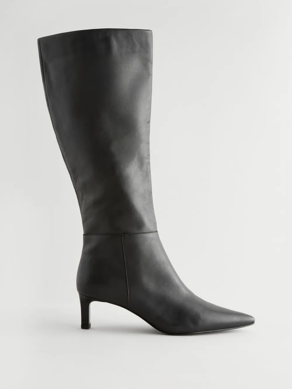 With a smooth black leather upper, these elegant knee high boots feature a pointed toe and a skinny heel, with a full-length zippered side fastening for easy on and off, boasting a Forever Comfort® cushioned footbed for all-day comfort. Leather upper Pointe toe Side zip Knee high Forever Comfort® footbed Skinny heel Heel height 5.5cm. Upper – Leather, Lining & Sock – Other Materials, Textile, Sole – Other Materials.