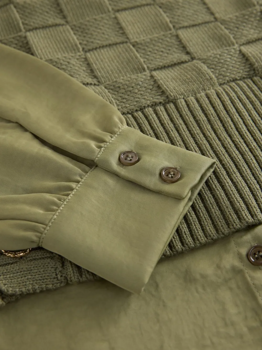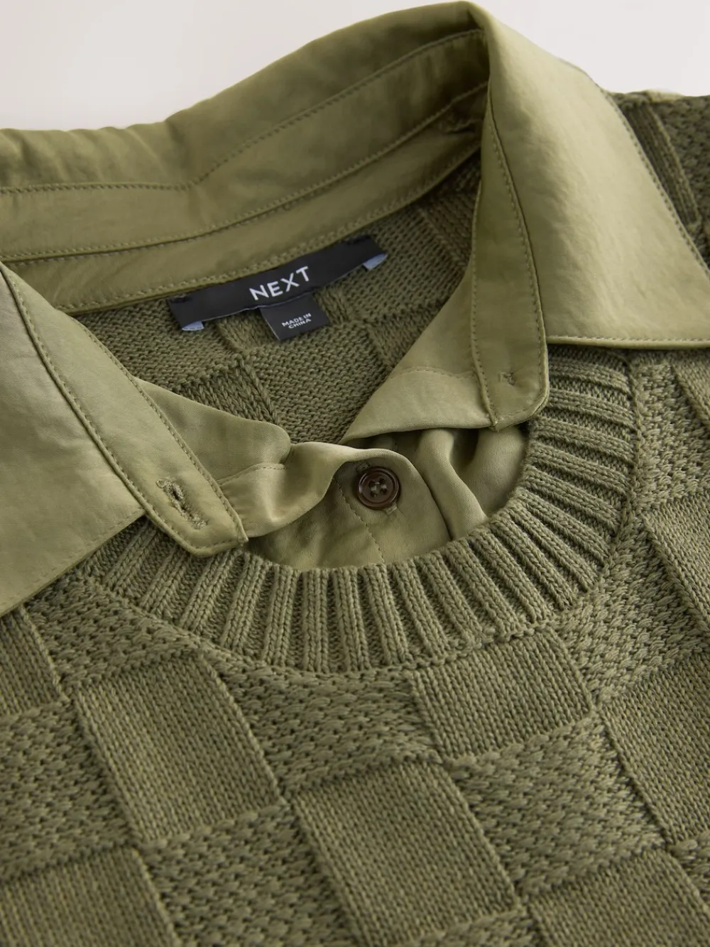 Next Knitted Tank Shirt Layer With Button Detail Khaki Green Sale