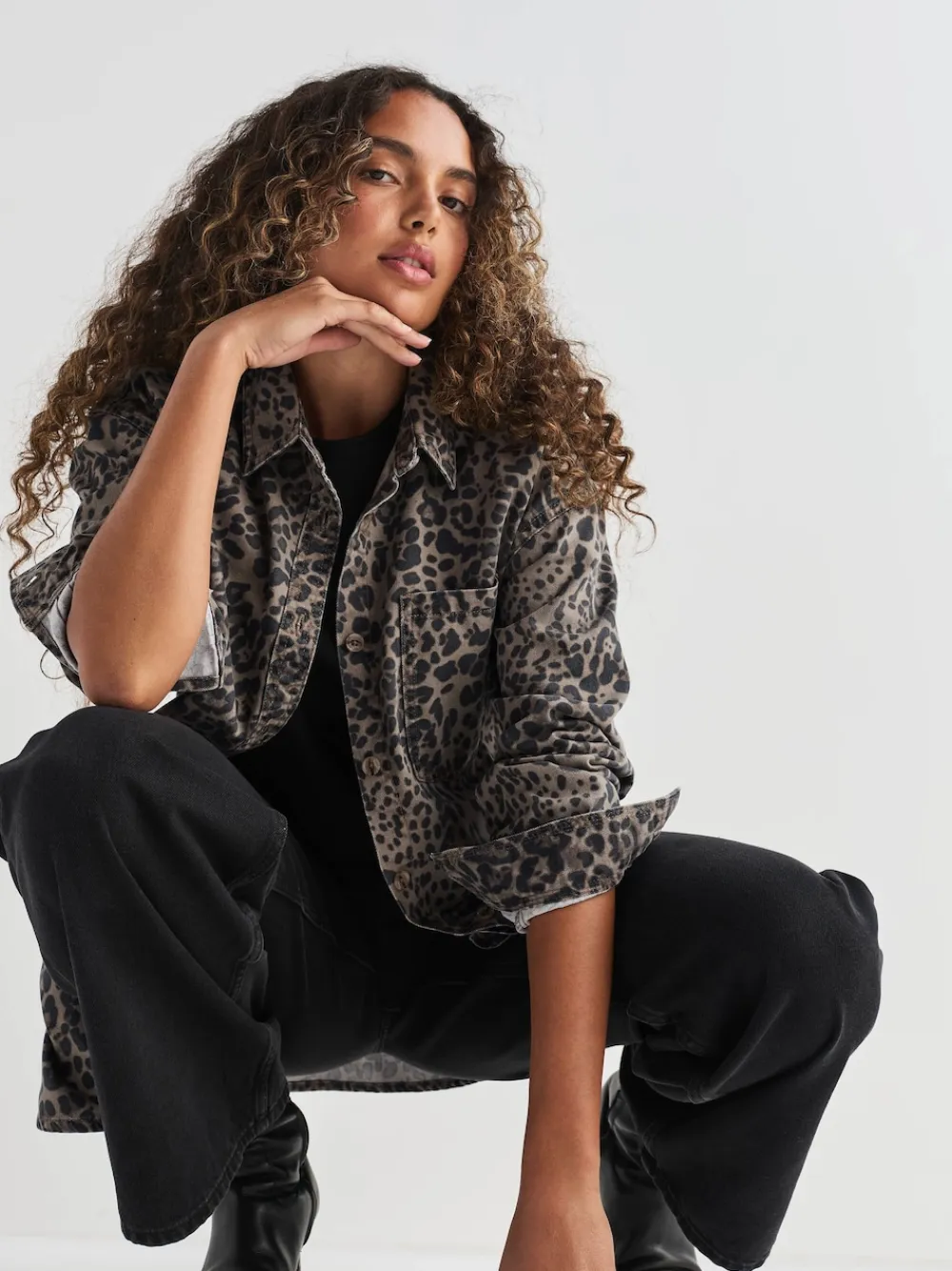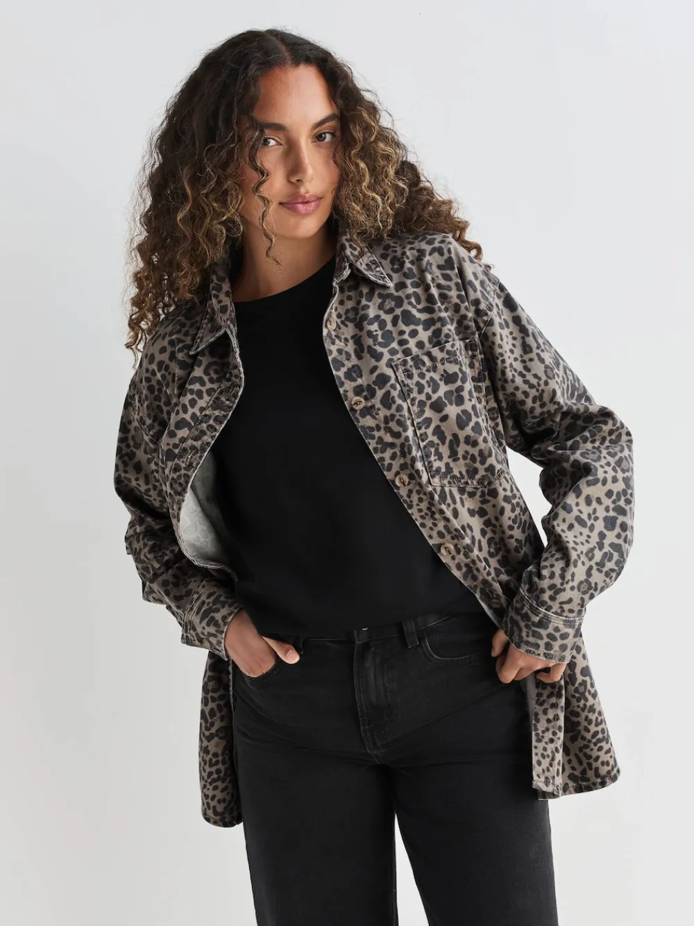 Next Leopard Print Oversize Denim Shirt Hot
