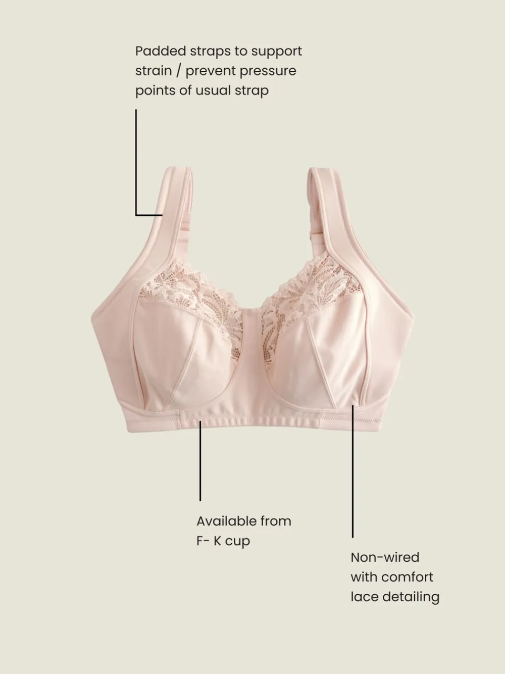 Be the first to review “Next Light Pink F-K Ultimate Comfort Cup Padded Strap Non Pad Non Wired Bra with Side Support Discount” Cancel reply