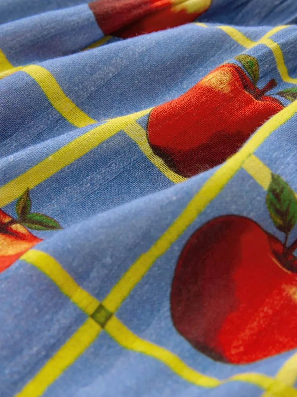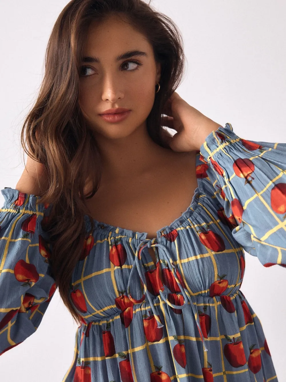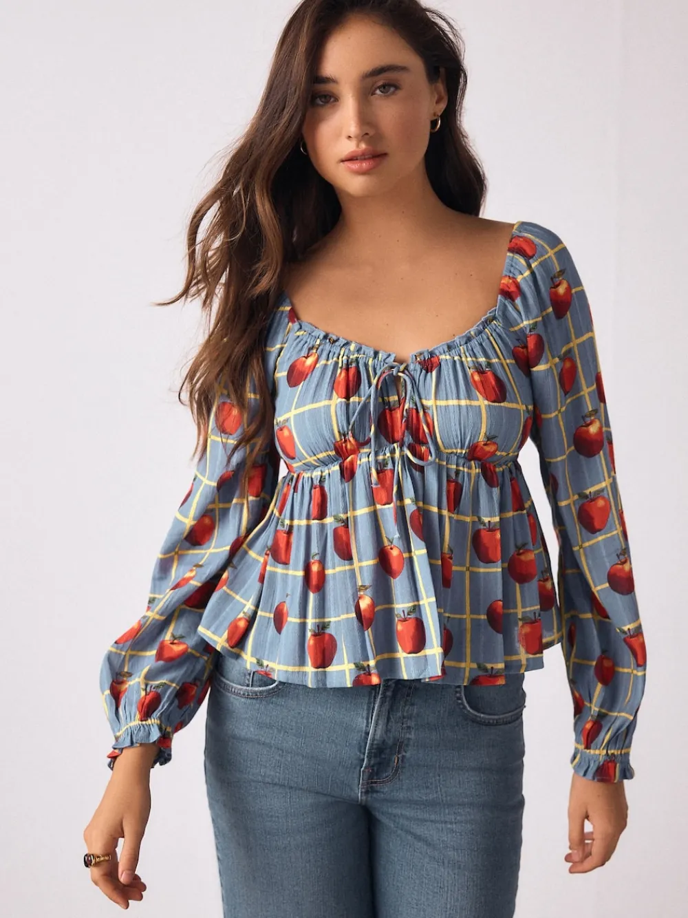 Next Long Sleeve Milkmaid Top Blue Apple Print Outlet