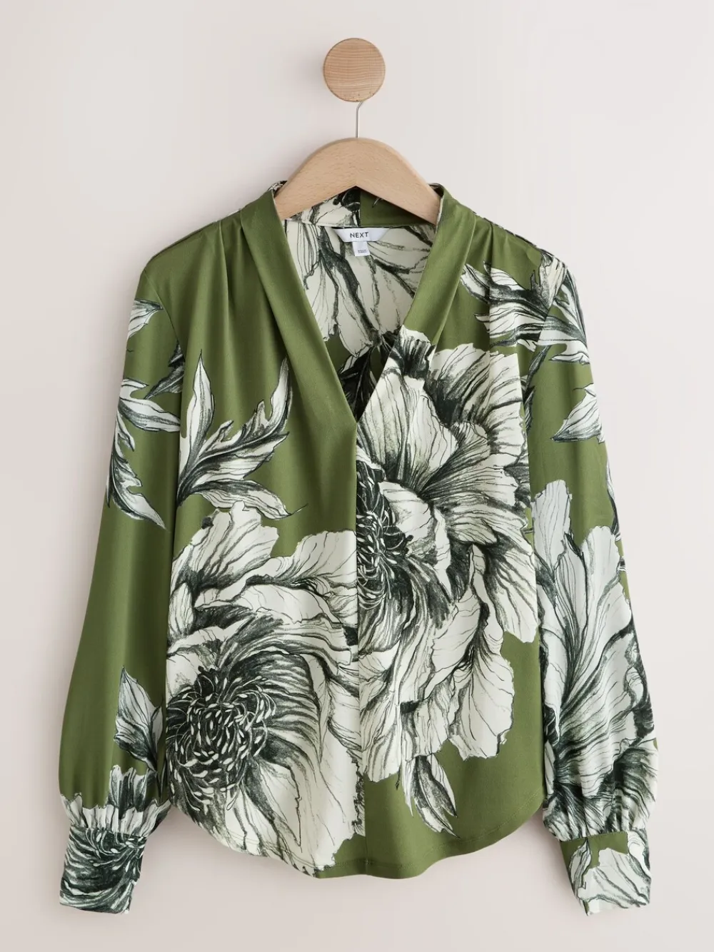 Next Long Sleeve V-Neck Blouse Green Floral
