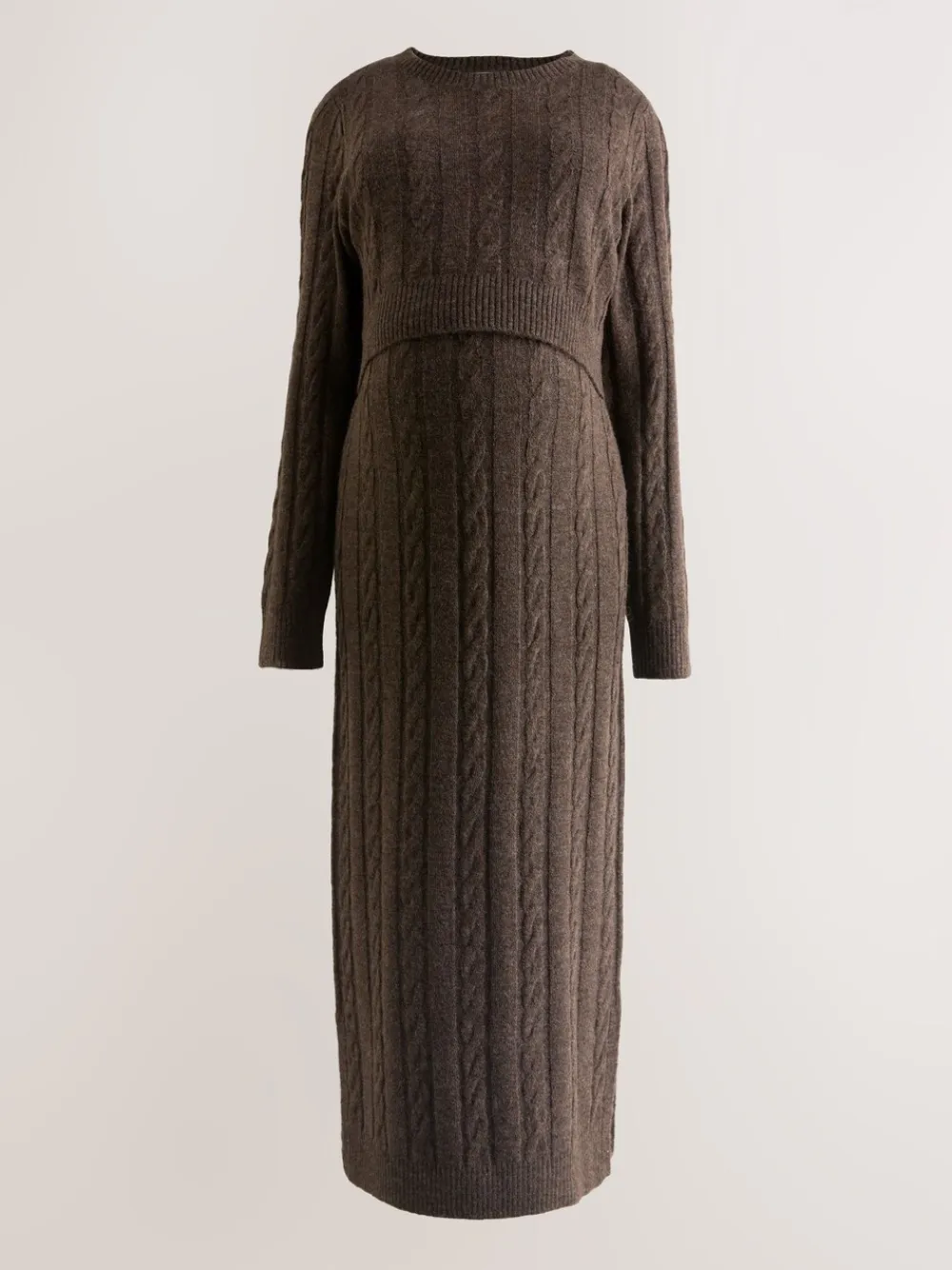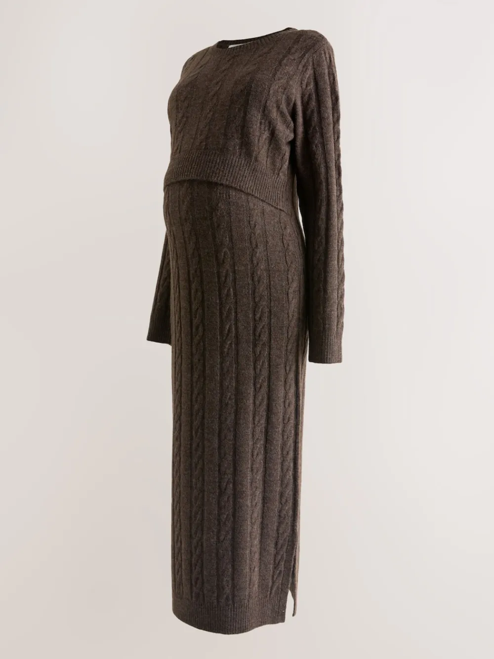 Next Maternity Knitted Nursing Dress Chocolate Brown Best