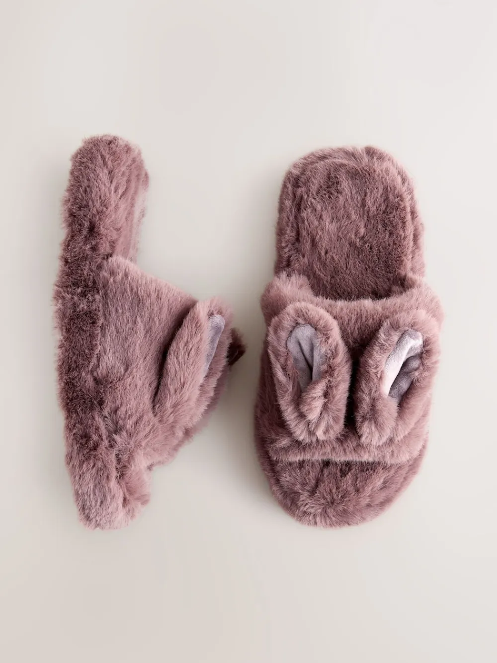 Next Mink Brown Bunny Faux Fur Slider Slippers