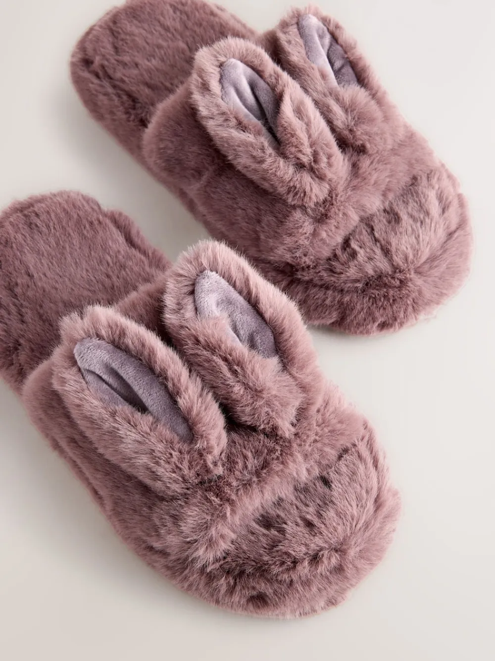 Indulge in fun, fuzzy comfort with these adorable bunny slider slippers. The super soft, cosy faux fur design features charming bunny ears, making these slip-on mules the perfect playful treat for relaxing at home. Bunny ear detail Super soft faux fur Slip-on slider style Upper – Textile, Lining & Sock – Textile, Sole – Textile, Other Materials.