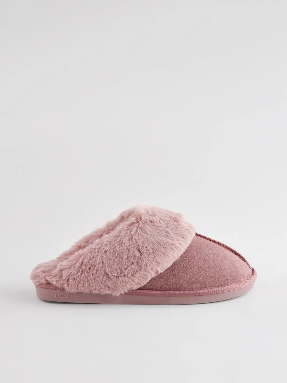 Next Mink Pink Faux Fur Lined Suede Mule Slippers Discount