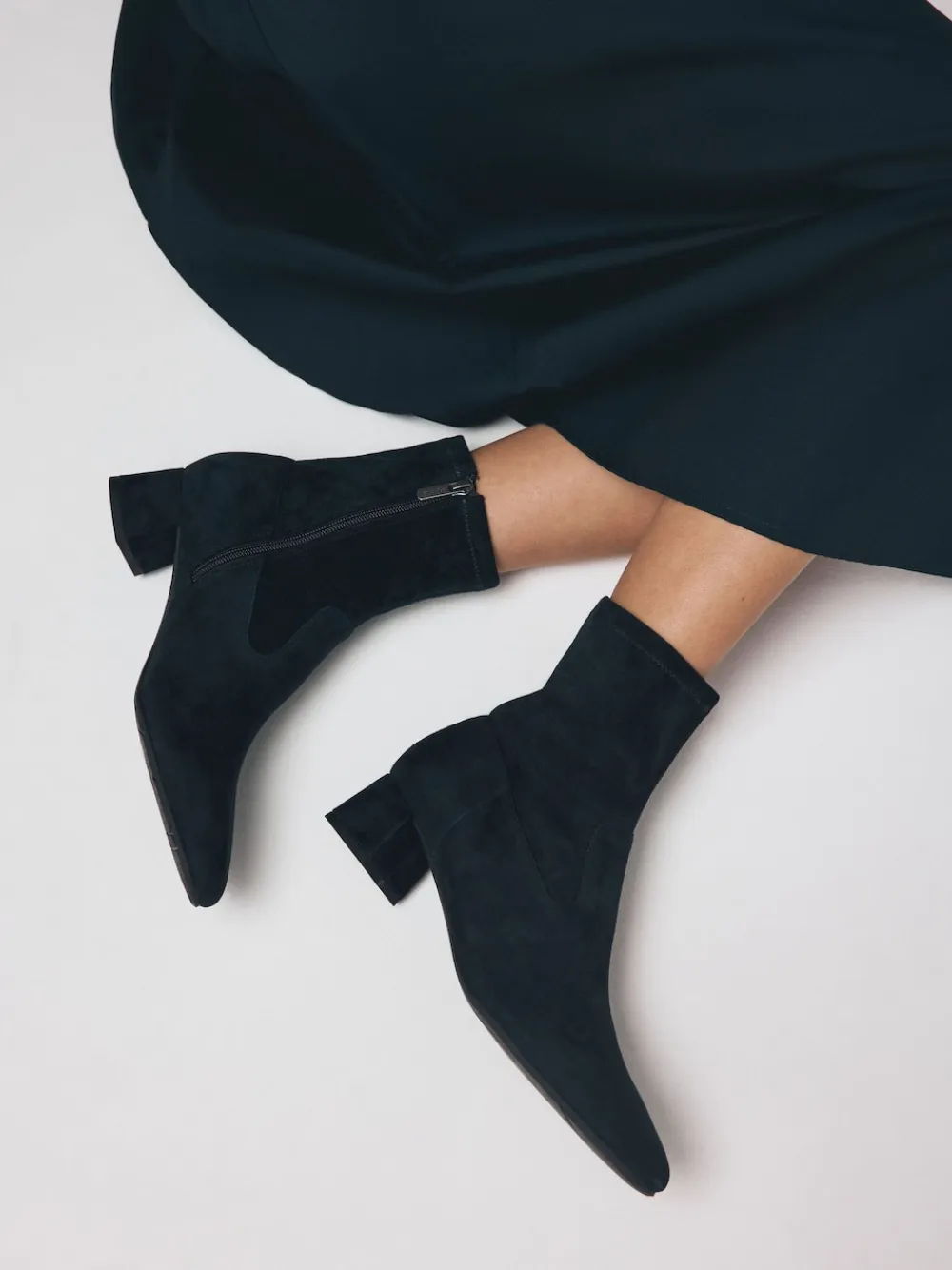 Next Motionflex Block Heeled Sock Boots Navy Blue Suede Sale