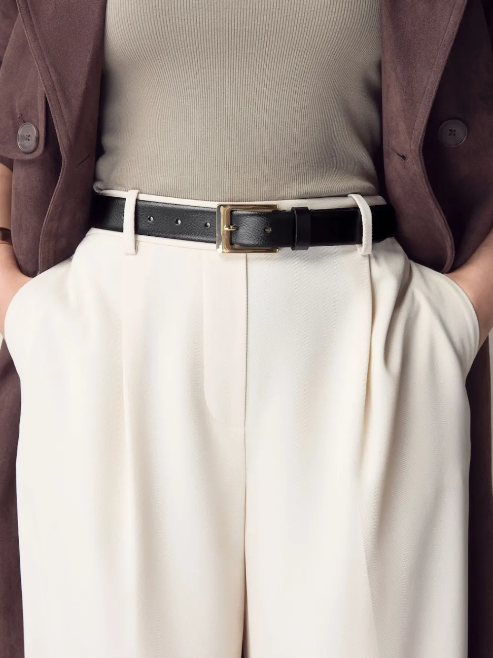 Add a touch of polished style to your outfits with this leather belt, expertly handmade in Italy. The classic shape and regular width provide a timeless feel, while the sleek hardware adds a modern touch. It is a versatile accessory that can be worn with jeans or cinched over a dress. Regular width Metallic hardware Handmade in Italy Leather material Adjustable fit 100% Leather.