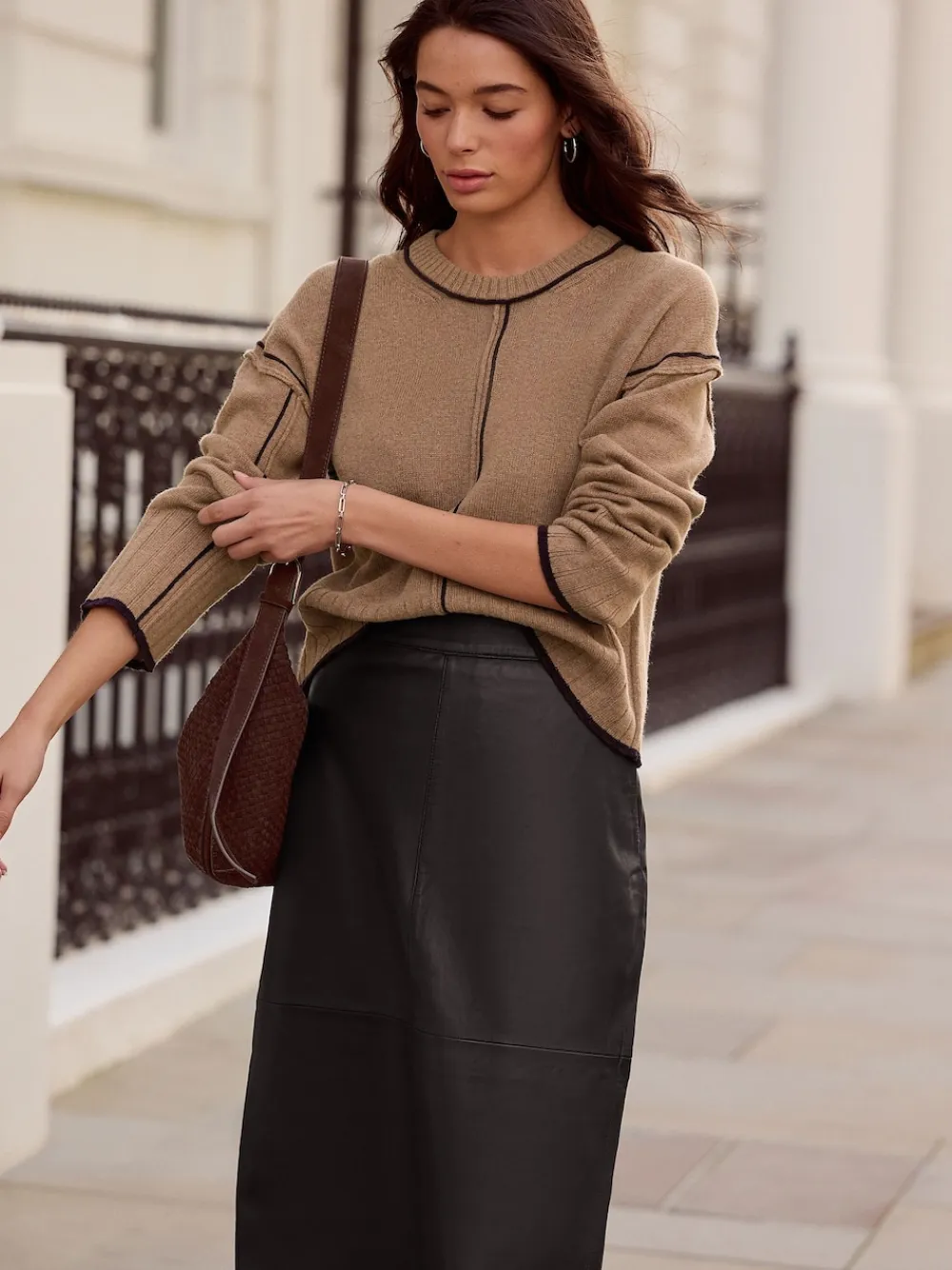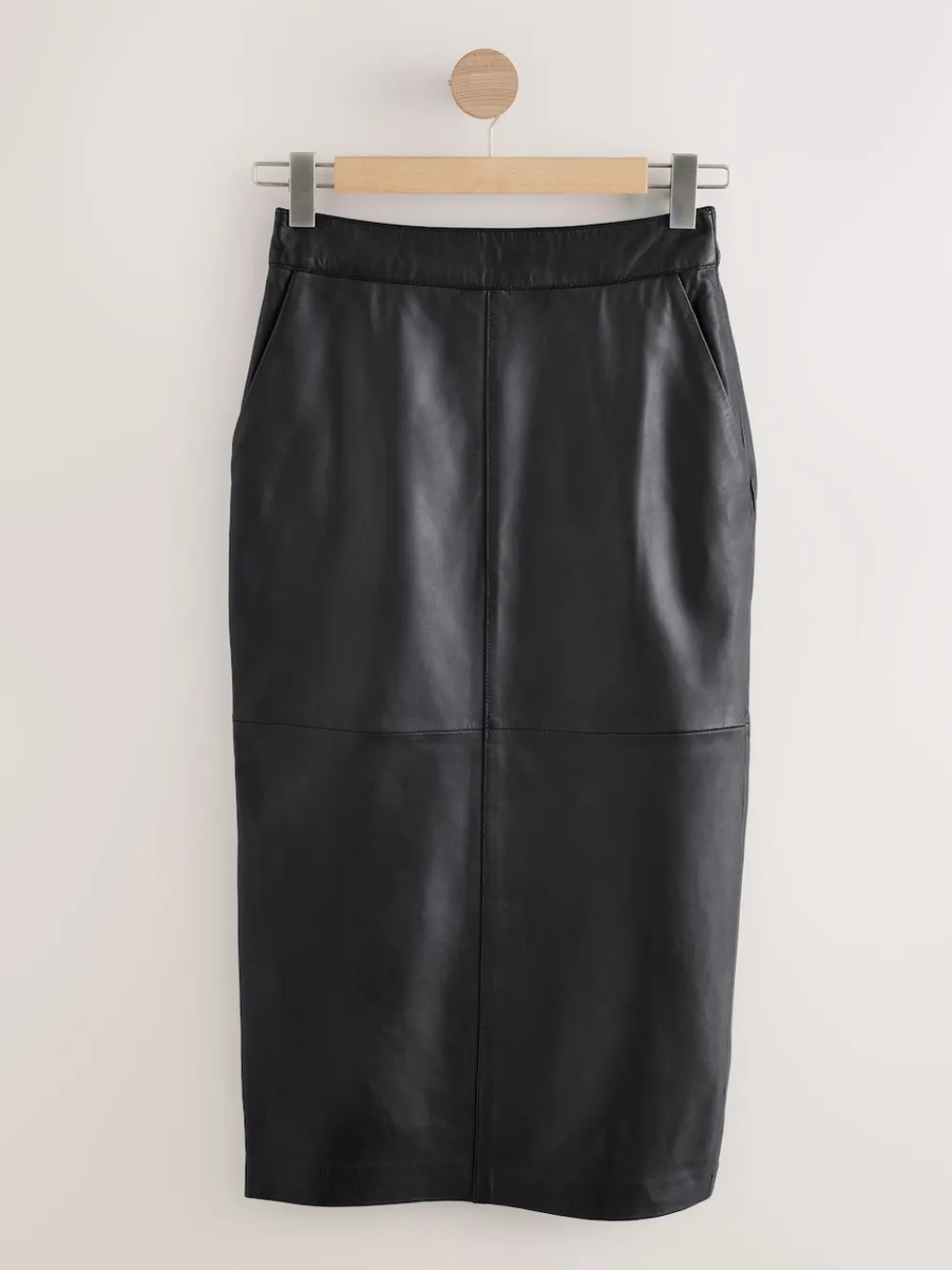 Add a sophisticated edge to your wardrobe with this premium leather skirt. The pencil silhouette and midaxi length create a chic, easy-to-style look for everyday. Practical pockets add functional appeal to this autumn/winter staple. Leather Pencil skirt style Pockets Midaxi length Regular waistband to hem 34″ / 86cm. Specialist dry clean. Shell 100% Leather. Lining 55% Polyester, 45% Viscose.