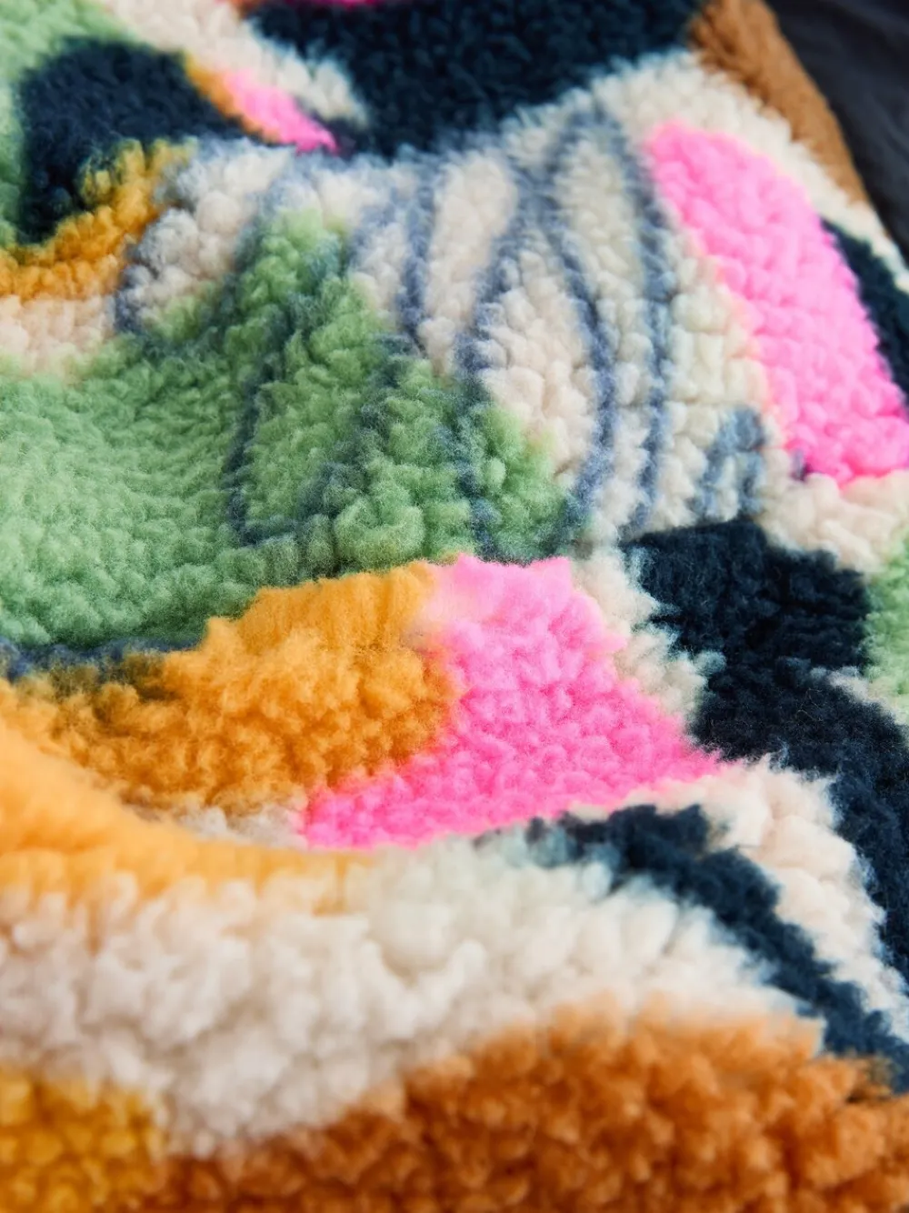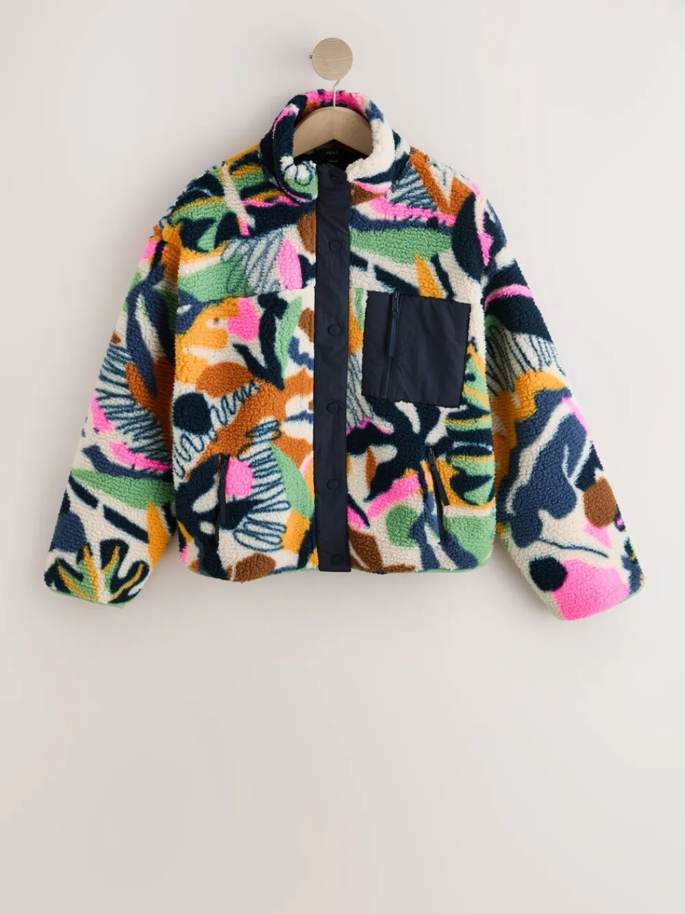 Next Navy Multi Graphic Floral Button Through Borg Jacket Clearance