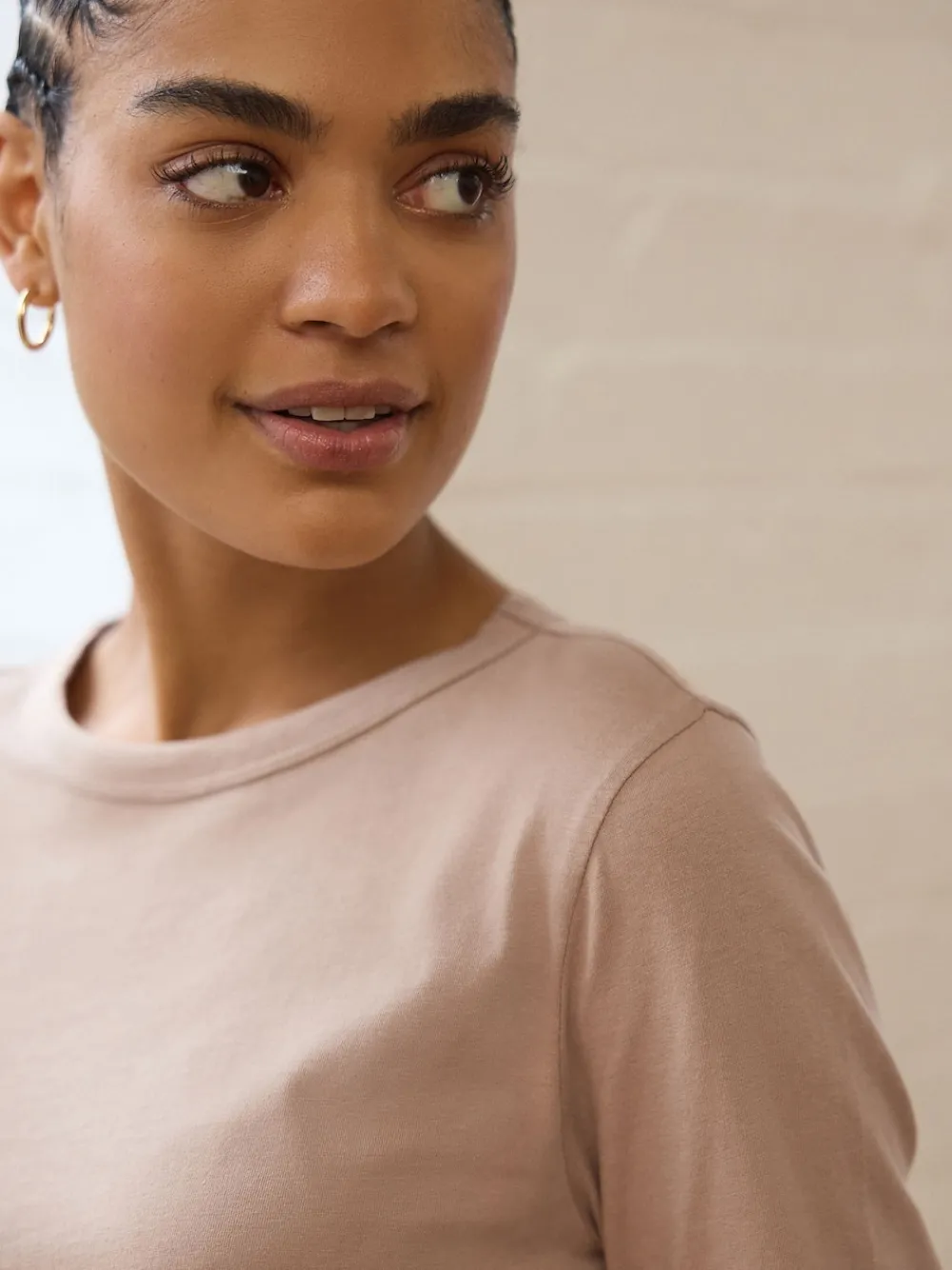 This dependable and versatile neutral long sleeve t-shirt is made from pure cotton and finished with a crewneck collar. Perfect for everyday wear or the office. Regular fit Crewneck collar 100% cotton Long sleeves Machine washable. 100% Cotton.