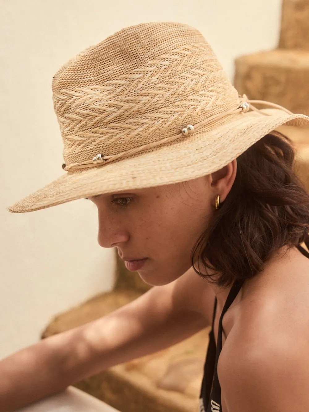 Embrace cowboy-inspired style with our packable Western hat. Crafted from lightweight and durable material, it retains its iconic Western shape while being easily foldable or rolled for packing. Western hat Packable Beaded trim detail 100% Recycled polyester.
