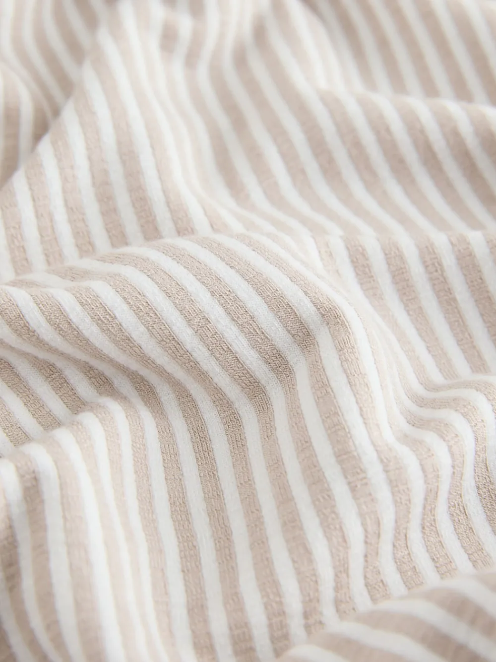Drift off in complete comfort with these super comfy jersey pyjamas. The soft neutral tone and subtle stripe print feature a classic button-through top with a collar and a chest pocket. Perfect for relaxed lounging and cosy nights. Jersey fabric Stripe print Button-up fastening Collar neckline Chest pocket Machine washable. Pyjama Top and Pyjama Bottom 47% LENZING™ ECOVERO™ Viscose, 47% Recycled polyester, 6% Elastane. Items with the curve logo are available in sizes 18 and above., Warning: Keep away from fire and flames.