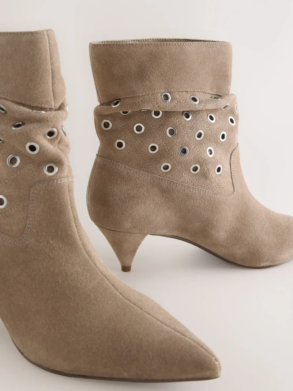 Next Neutral Suede Forever Comfort® Eyelet Embellished Ankle Boots Outlet