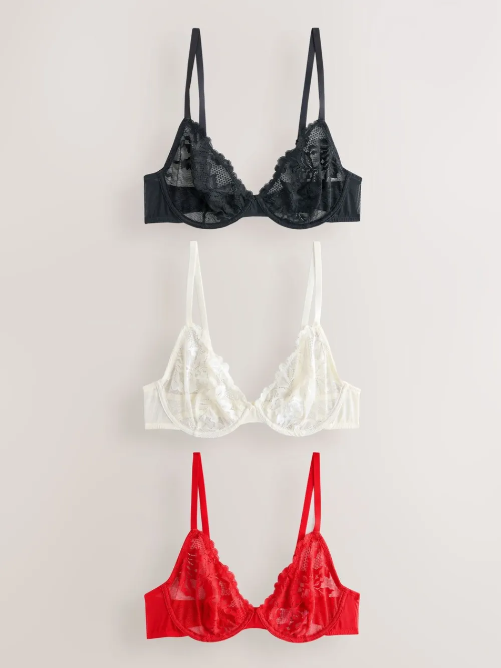 Next Non Pad Full Cup Lace Bras 3 Pack Black/Red/Cream Hot
