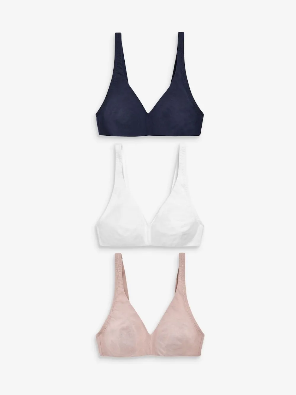 Next Non Pad Non Wire Cotton Blend Ultimate Comfort Bras 3 Pack White/Navy Blue/Pink New