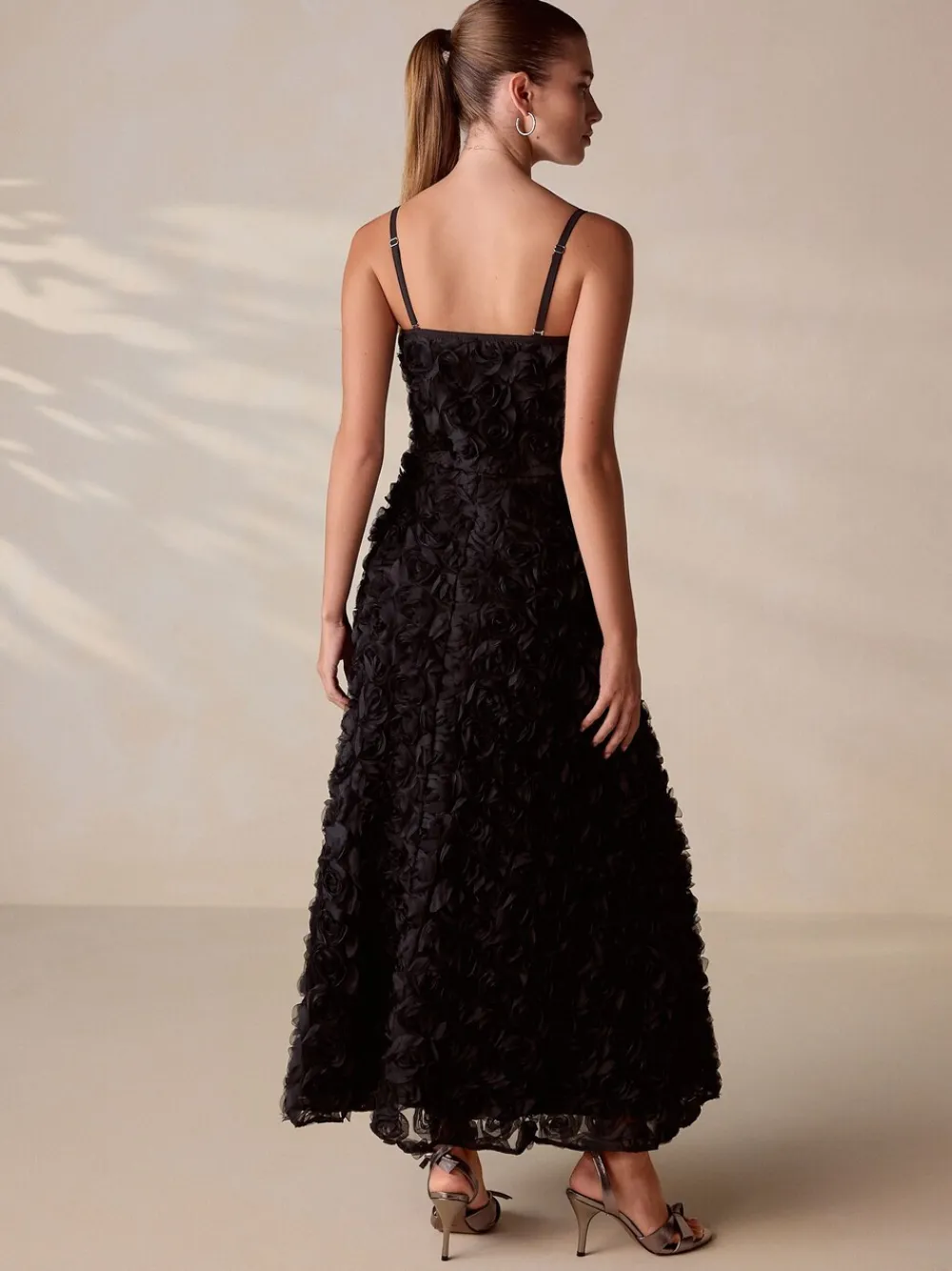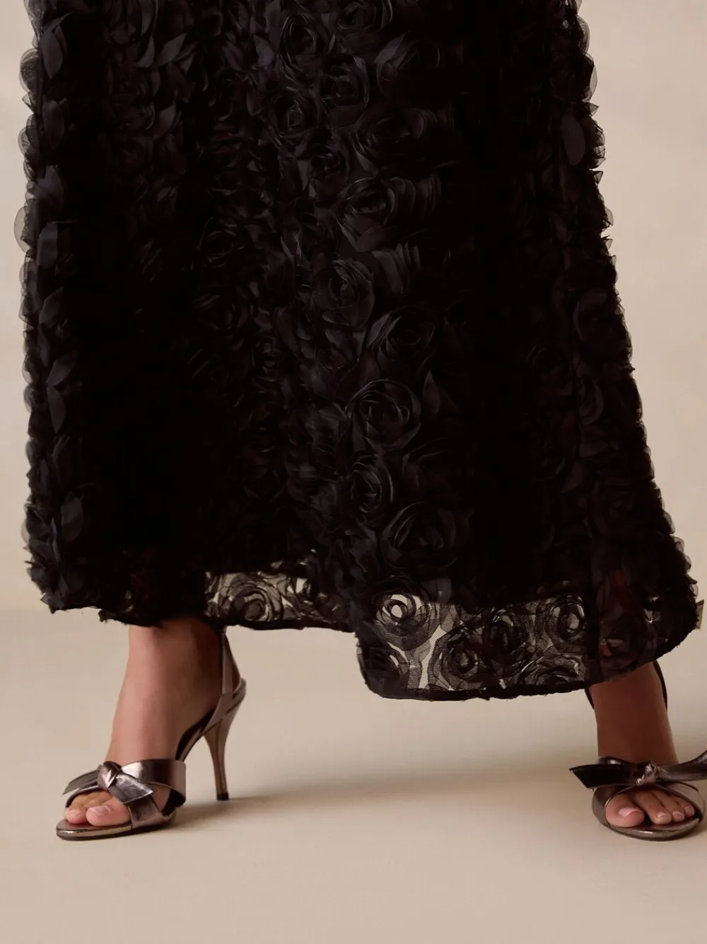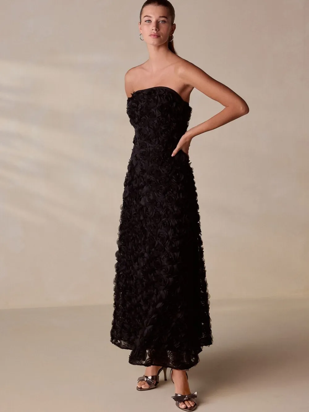 Next Occasion 3D Floral Bandeau Maxi Dress with Detachable Straps Black