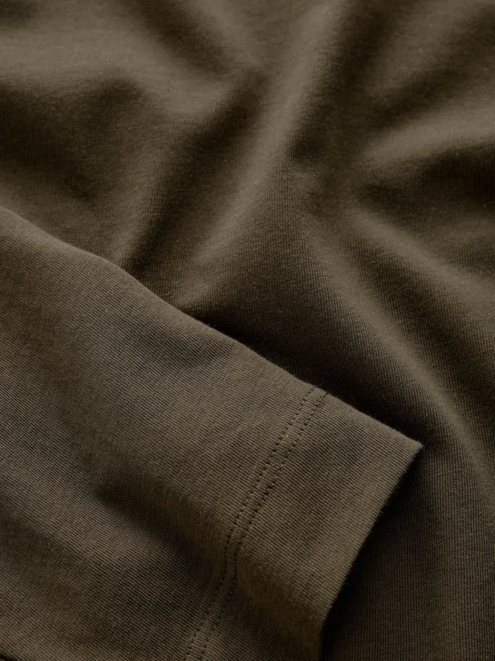 This dependable and versatile olive green long sleeve t-shirt is made from pure cotton and finished with a crewneck collar. Perfect for everyday wear or the office. Regular fit Crewneck collar 100% cotton Long sleeves Machine washable. 100% Cotton.