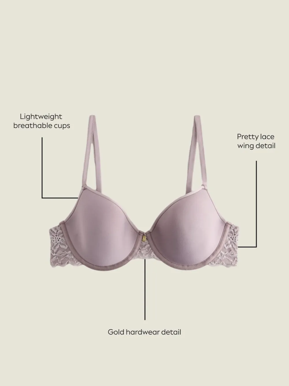 Designed for everyday wear, the Premium Ultimate Comfort Lightweight Breathable T-Shirt Bra combines comfort and style. The bra features a full, smoothing cup for a seamless look under any clothing. This bra is made with a lightweight and breathable fabric and features Spacer Cups, offering the perfect combination of a padded and non-padded bra. The Spacer Cups provide the lightness and feel of a non-padded bra with the support and modesty of a padded one. A beautiful lace wing and a delicate gold hardware detail at the front add a pretty, feminine finish. Full cup Lace wing Gold hardware detail Machine washable. 67% Polyester, 22% Nylon, 11% Elastane. CoppaFeel! are the UK’s only youth focused breast cancer awareness charity on a mission to get every young person checking their chest. Next are proud to support their bra hijack campaign.