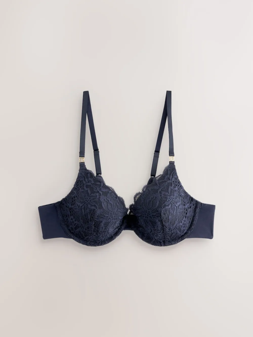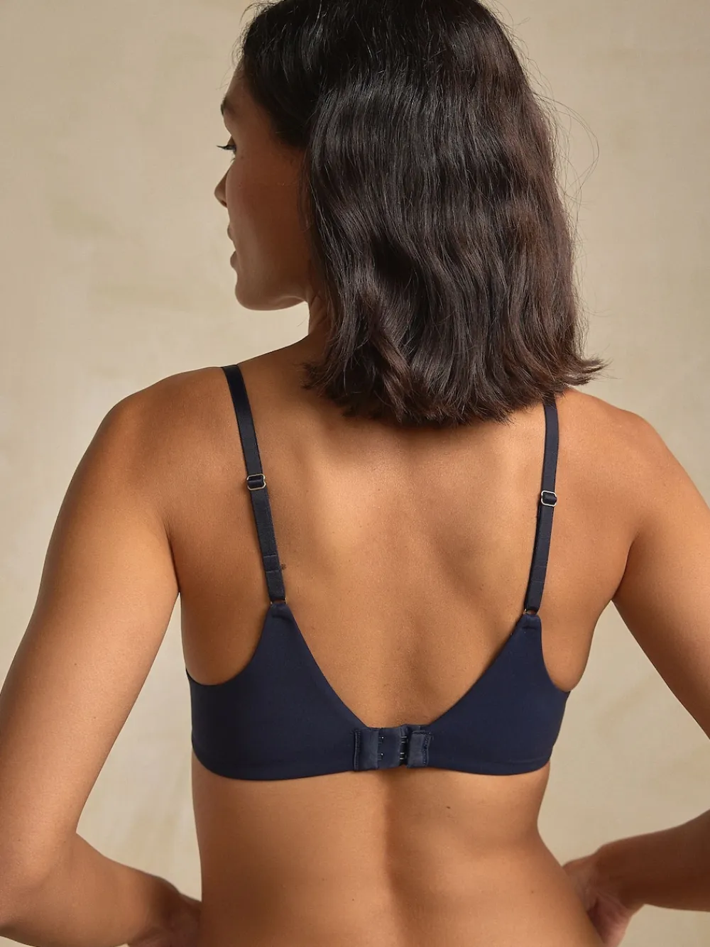 Experience a perfect blend of style and support with this Premium Ultimate Comfort T-Shirt Bra in navy. The smooth cups and adjustable straps create a flawless silhouette, while the delicate lace detail adds a touch of elegance for everyday wear. Lace overlay Adjustable straps with gold-tone hardware Hook-and-eye fastening Machine washable. 62% Nylon, 20% Elastane, 18% Polyester. CoppaFeel! are the UK’s only youth focused breast cancer awareness charity on a mission to get every young person checking their chest. Next are proud to support their bra hijack campaign.