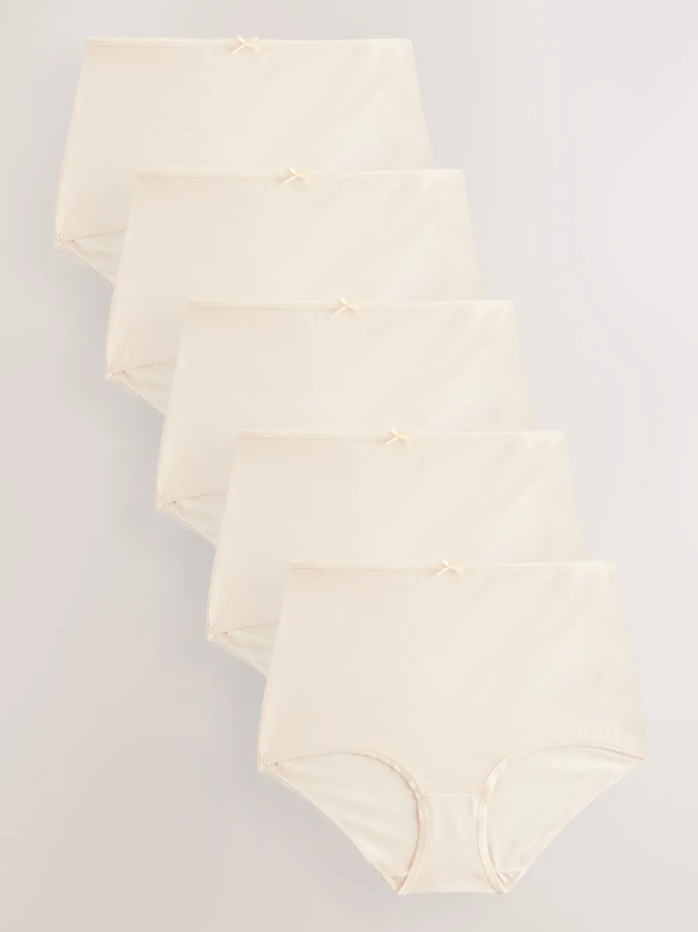 Our bestselling everyday knickers. Naturally breathable cotton for all day comfort. Comes in a range of pack size, shape and colour to suit all customers. Machine washable. 5 x Knickers Main 95% Cotton, 5% Elastane. Gusset 100% Cotton. Items with the curve logo are available in sizes 18 and above.