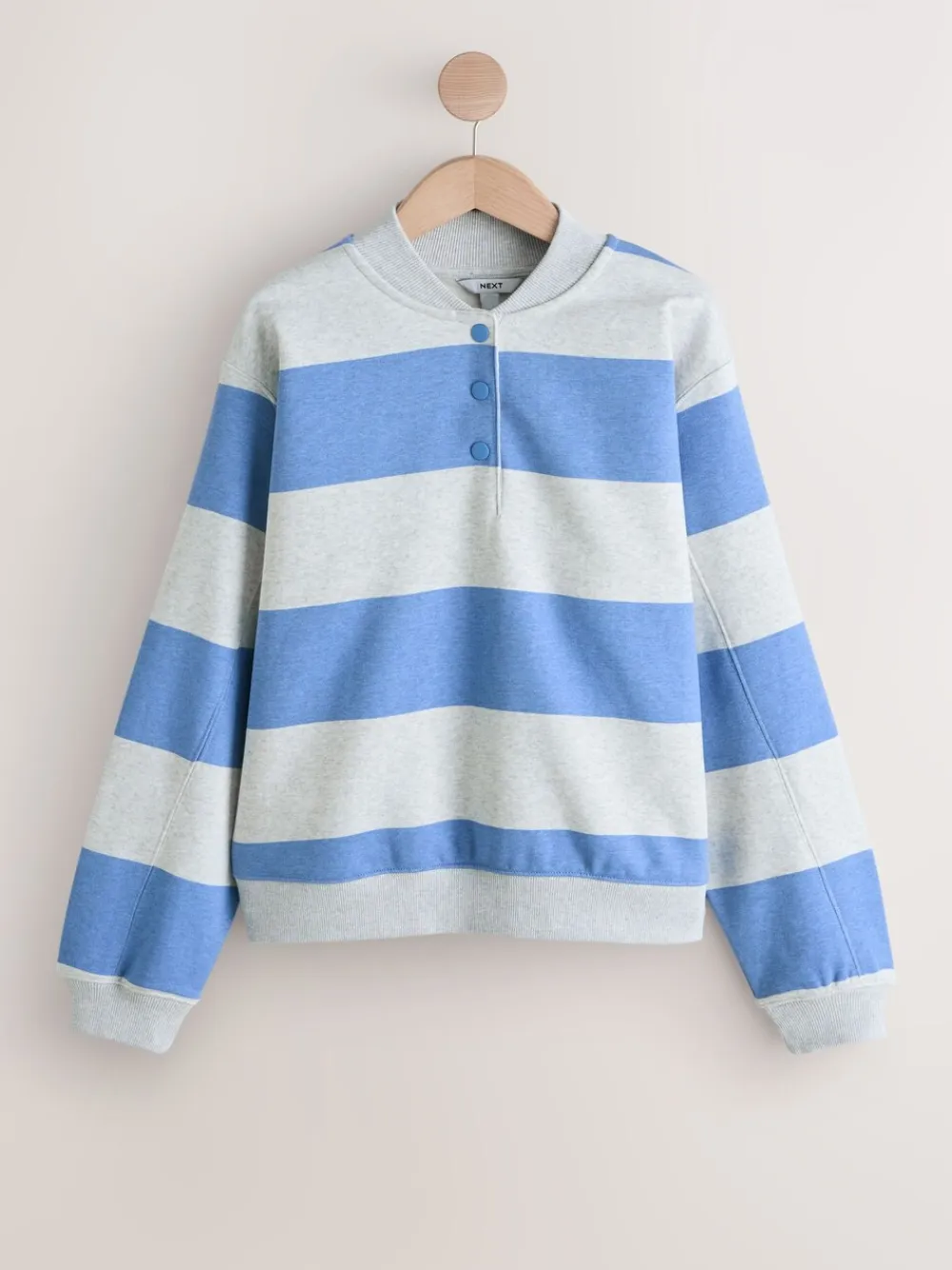 Next Popperneck Henley Sweatshirt Grey and Blue New