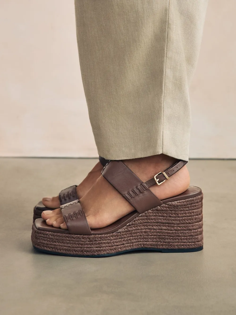 With a premium leather upper, these stylish sandals are perfect for summer, with an open toe, an adjustable heel strap and a Forever Comfort® cushioned footbed for all day comfort, finished with a wedge heel and a rattan trim. Leather upper Open toe Forever Comfort® footbed Wedge heel Heel height 9cm. Upper – Leather, Lining & Sock – Other Materials, Sole – Other Materials.