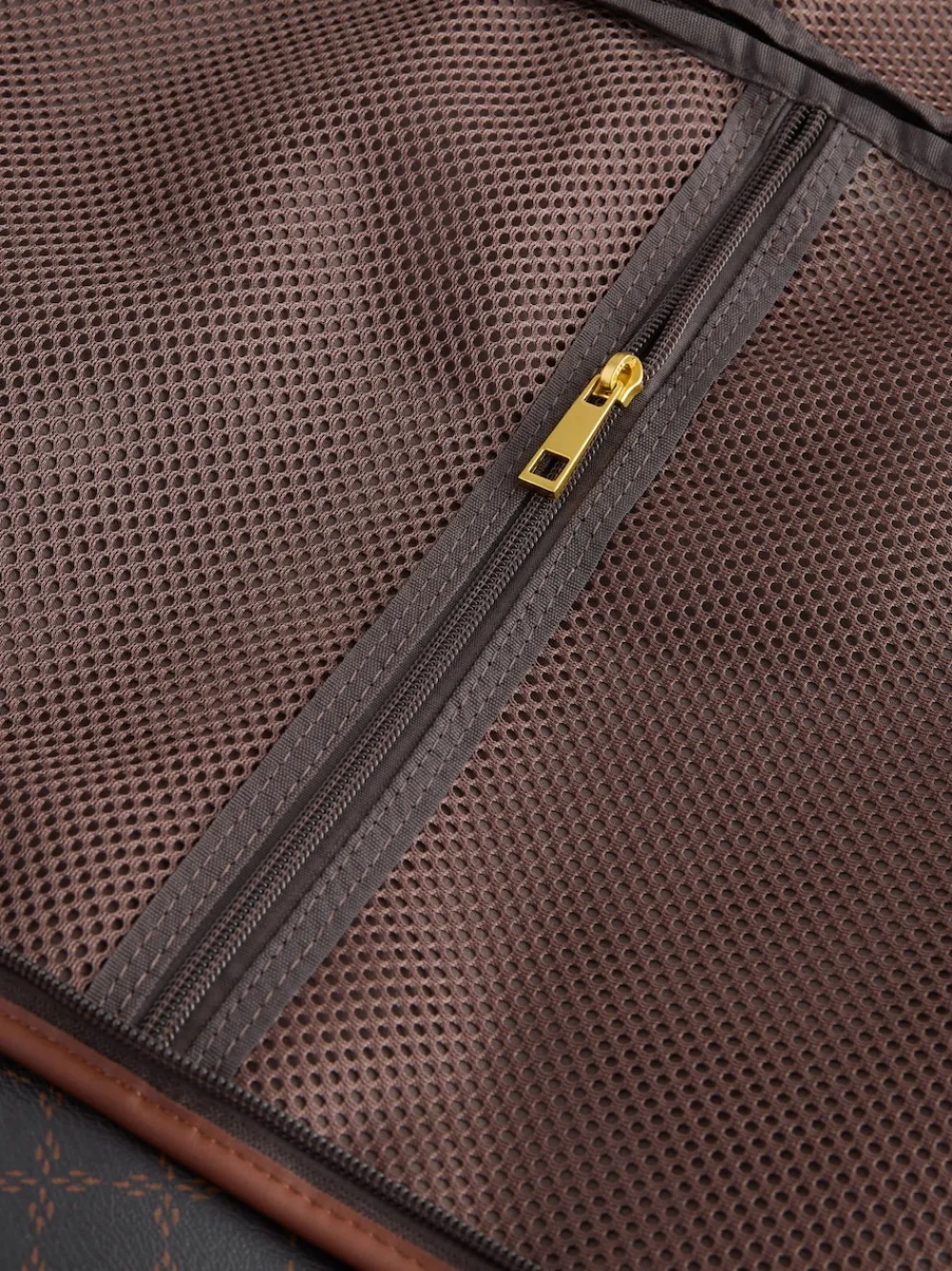 Perfect for travel, this stylish garment bag keeps your suits and dresses organised and protected. The chic monogram print creates a sophisticated look, while the zip around fastening ensures everything stays secure on the go. Monogram print Zip around fastening Garment bag style Height 50cm Width 61.5cm Depth 2cm Main 100% Polyurethane. Lining 100% Recycled polyester. Trim 100% TPU.