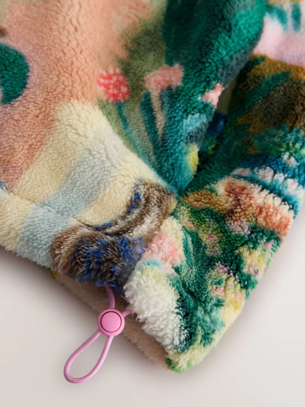 Wrap up in this incredibly cosy printed top, perfect for the colder months. Made from bonded fleece fabric, it features a soft borg outer and a fleece lining. The hooded design and generous fit will keep you super soft and warm. Bonded Fleece Fabric Printed borg outer Hooded Super soft and cosy Available in other designs Machine washable. 100% Recycled polyester. Warning: Keep away from fire and flames.