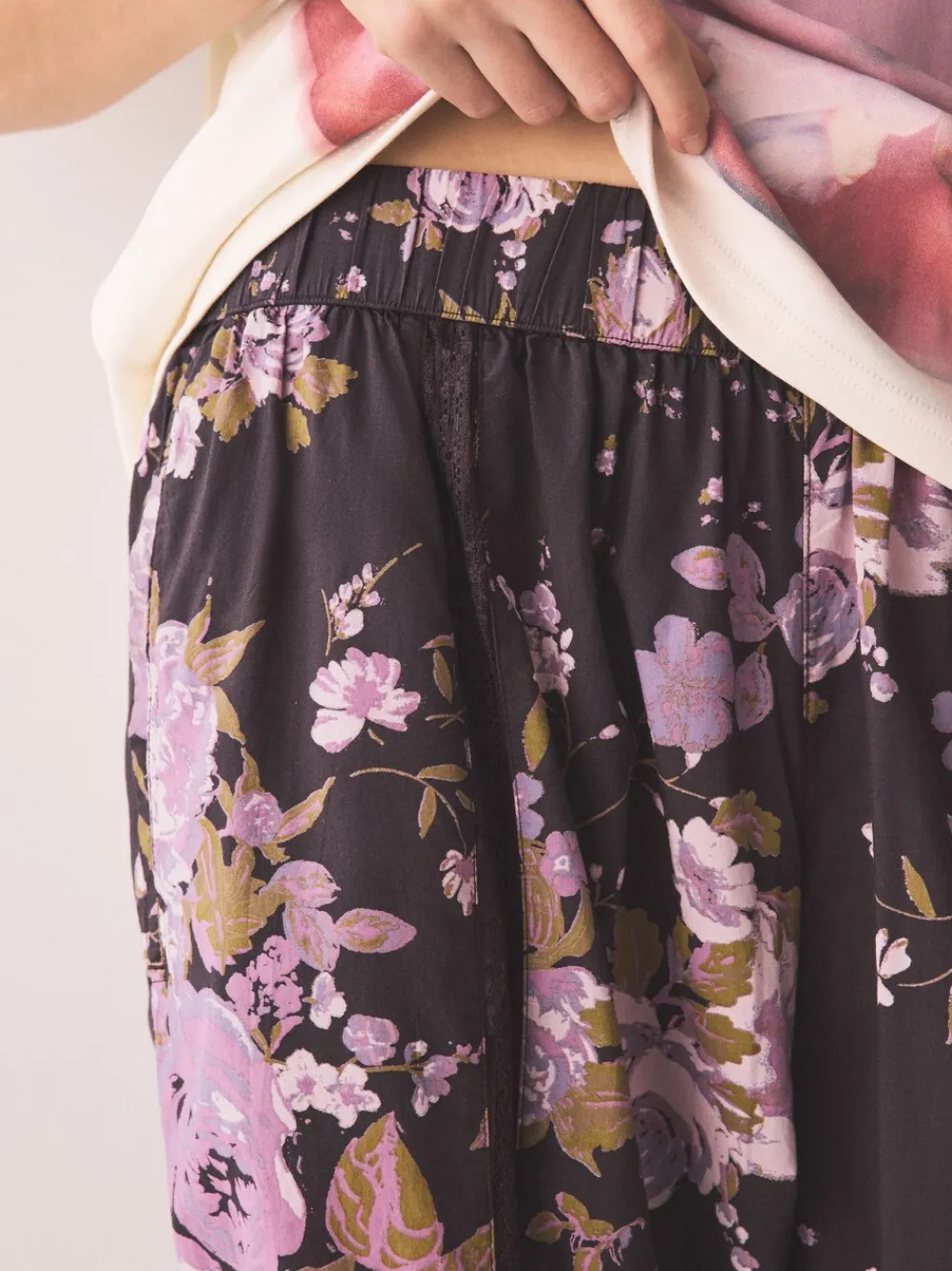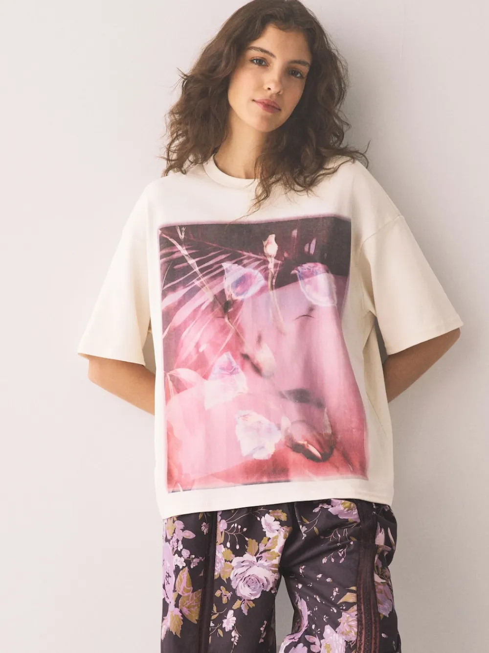 Drift off in style with this super soft and comfy pyjama set. It features a plain short sleeve top with a striking floral print chest graphic, paired with beautiful all-over floral pattern trousers. Perfect for relaxing at bedtime. Floral print graphic on top All-over floral print on trousers Short sleeve top Super soft and comfy Machine washable. T-shirt and Trouser 100% Cotton. Items with the curve logo are available in sizes 18 and above., Warning: Keep away from fire and flames.